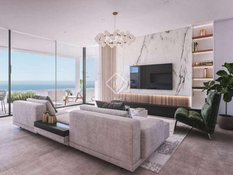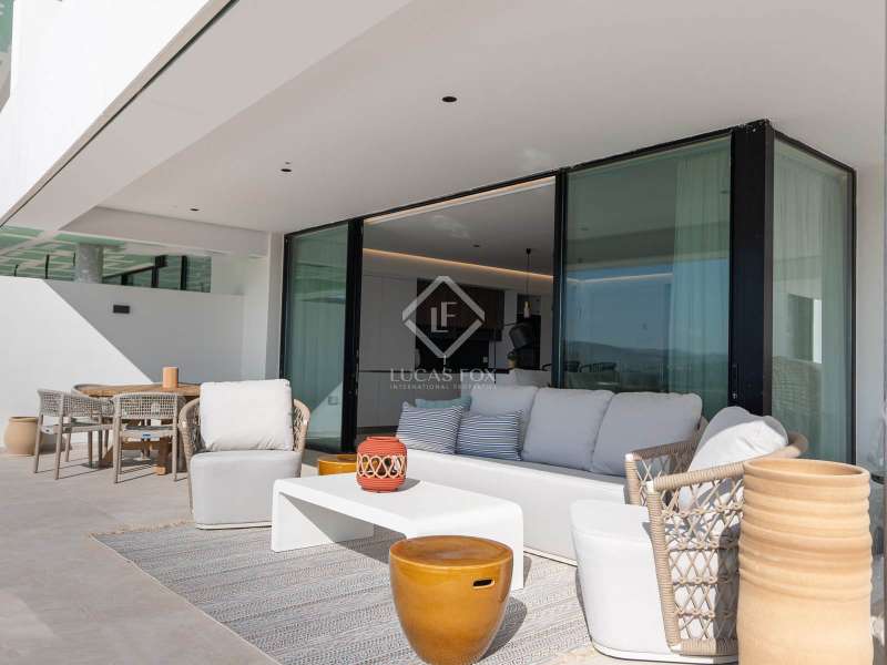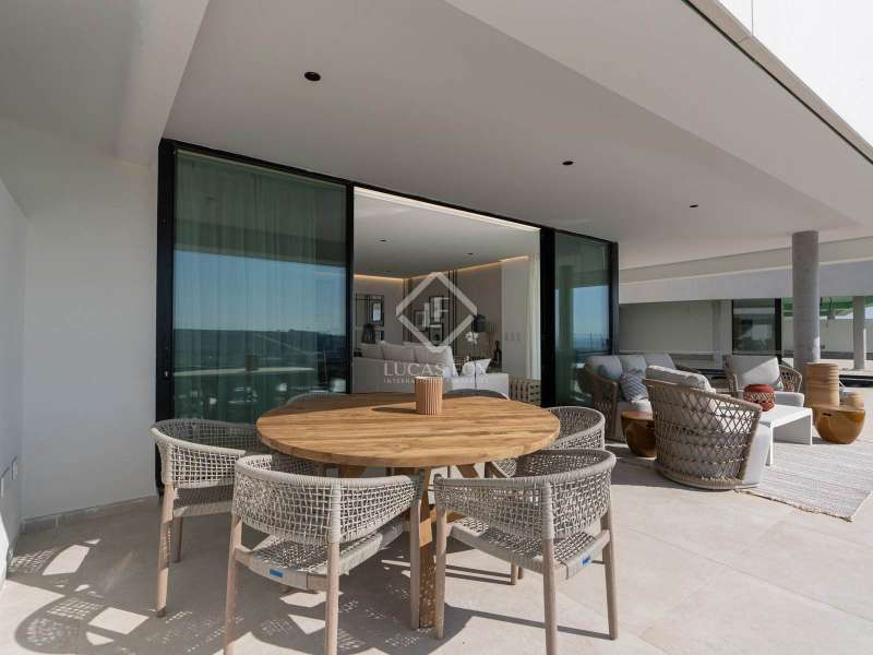 The entrance of this apartment opens into a small, welcoming foyer area with easy access to the main living spaces. To the left, there is a laundry/utility room, a convenient addition for everyday living. To the right, we enter the open-plan living and dining area, seamlessly integrated with the modern kitchen. The kitchen comes fully equipped with state-of-the-art appliances, and its open design ensures a comfortable layout for entertaining. The living room is bright and airy, thanks to the large glass doors that lead to the first terrace. This terrace wraps around the apartment and provides an outdoor seating and dining area, which is perfect for enjoying the Mediterranean lifestyle. From here, we can enjoy views of the surrounding greenery and possibly a glimpse of the sea. Heading back towards the hallway, we find two bedrooms that share a modern bathroom and feature built-in wardrobes. Both rooms have direct access to the terrace, allowing natural light to flood the spaces. There is also a main room which offers more privacy, with its en-suite bathroom. It also opens directly onto the terrace, making it possible to wake up to serene views each morning. Heading up the staircase, we find the highlight of this penthouse, the expansive rooftop terrace. Spanning 64.3 m², this space can be personalized with outdoor furniture, sun loungers, and even a jacuzzi. From here, we can enjoy breathtaking 360º views of the surrounding mountains, greenery, and sea. This terrace offers the perfect combination of privacy and luxury. The apartment comes with two parking spaces and a storage room, ensuring convenience and ample space for your belongings. Located in a private, modern development, this home provides access to two swimming pools, a gym, and a co-working space. Please contact us for further information.