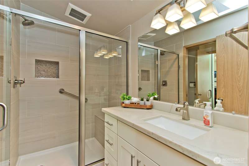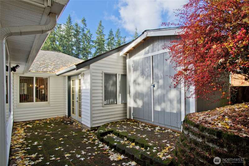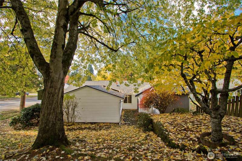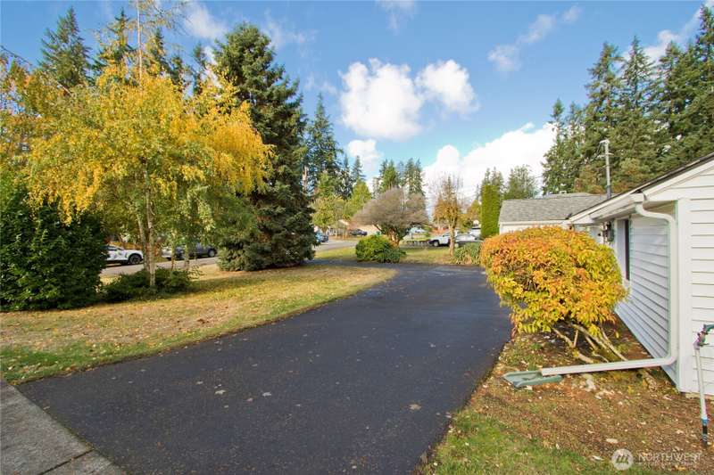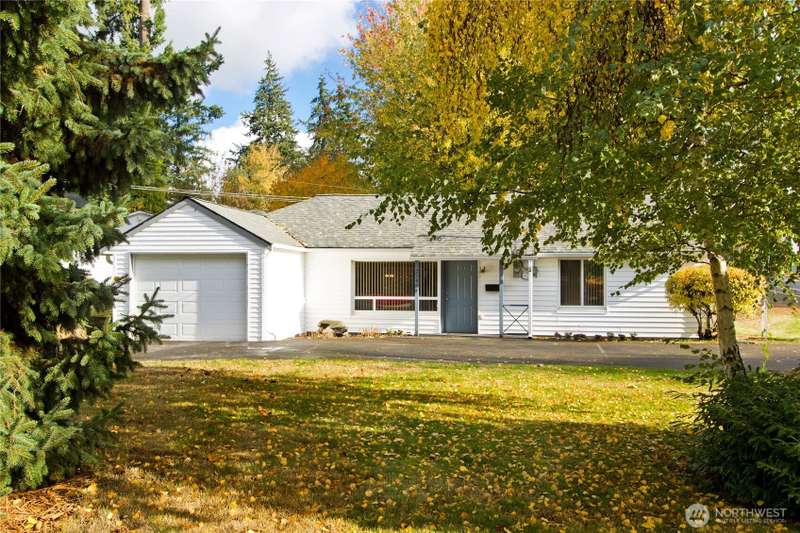 Welcome Home to this Charming One-Story Home in Mountlake Terrace on a large corner lot with a circular drive. This well-maintained 4 BDRM, 2 BATH home is ready for its new owner. Living room with big picture-perfect window, kitchen featuring stainless steel appliances, and adjoining dining area. Primary Bedroom features walk-in closet, ensuite bathroom and office nook. The spacious 4th bedroom is on the opposite side of the home, also with a walk-in closet & French doors leading to the backyard. Both bathrooms are beautifully updated and modern. The private patio is tucked in the backyard plus there is a handy storage shed, terraced landscaping and mature trees to add privacy and shade. 1-car garage, room for RV Parking. Cozy PNW living!