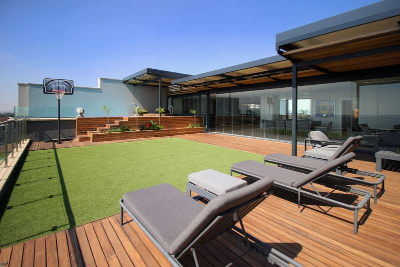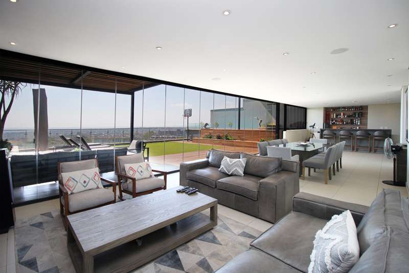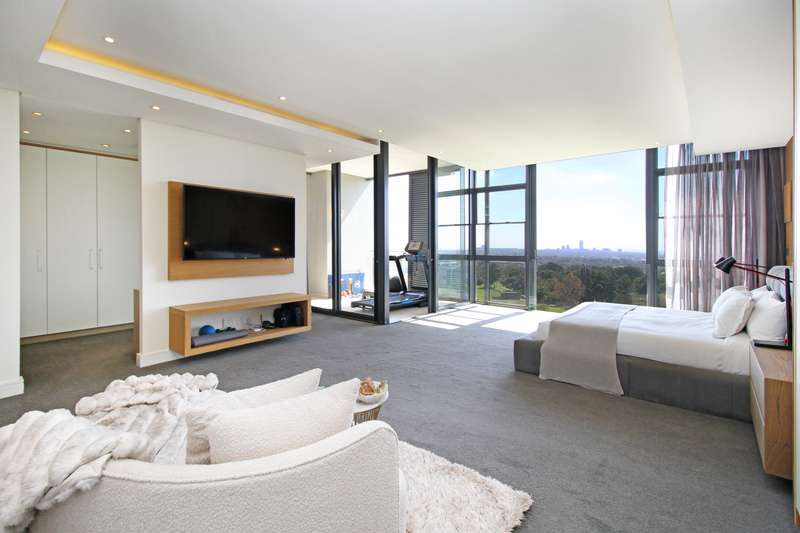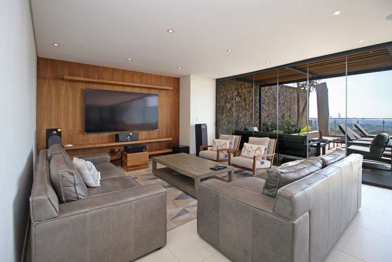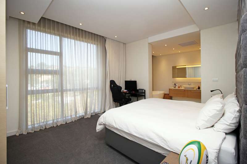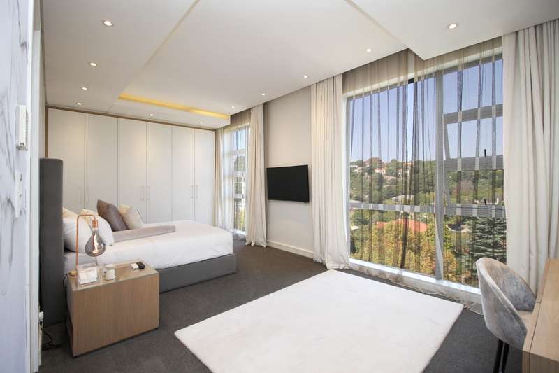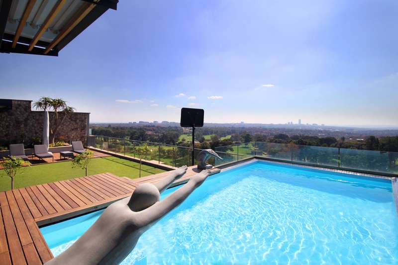 You deserve a unique, privileged lifestyle experience! Everything about this luxury, north-facing, 4-bedroom, 2-floor penthouse in the prestigious "The Houghton on 12th" development is superlative. You get all you would expect for luxury living. The apartment is superbly designed in every respect, with optimum usage of space. High ceilings and full-length windows provide light and space and an unparalleled view of the beautiful, scenic golf course and lake. Downstairs offers: A large open-plan lounge, dining area and kitchen as well as a bar area; a large patio; a state-of-the art fully-fitted kitchen (Siemens appliances) and a separate laundry/scullery; three spacious en-suite bedrooms; a guest loo; and a work-from-home study. Also, a games / movie room! Upstairs offers: A magnificent, sparkling pool and Jacuzzi and spacious astro-turf area overlooking the golf course, together with a generously-sized, open-plan entertainment area, including a lounge, dining area, bar and kitchenette (with gas braai). Also, a large, covered patio. Ideal for entertaining and just living in style! Plus, a 4th guest bedroom and a loo and outside shower (hot & cold).. Other features: • Lift access directly into the apartment and also to the penthouse upstairs. • Staircase between the two floors. • Parking for 3 cars (with roller-shutter door) right next to the lift in the basement, and secure parking for guests. • Underfloor heating and climate control in all the rooms. • Double glazing on the south side offers silence and efficiency. State-of-the art security at The Houghton includes fingerprint biometric access control; a concierge to receive deliveries and bring them to your door; car wash and valet in the carpark. Instant electricity generator in the building means no load shedding; reserve water supplies ensure continuity of supply. Residents have direct access to the unique facilities of the Hotel, including pools, restaurant, spa, gym, and great medical facilities.