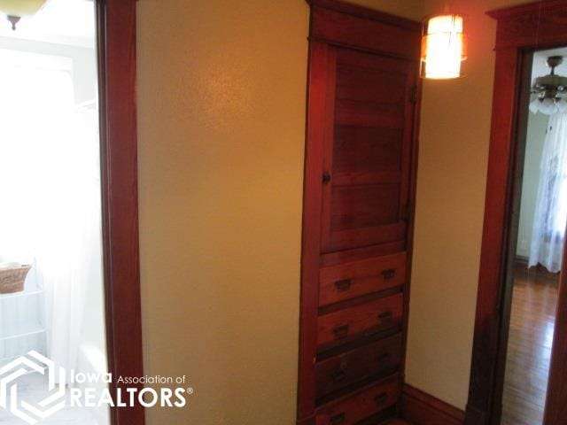 Turn of the century craftsman style brought in to 2025 very professionally. Hardwood floors were sanded, stained, and finished with complementary area rugs in living room and dining room. Rooms are split with beautiful colonnades. Dinning room has a large built in hutch. Kitchen has lots of cabinets, island with new electric stove, refrigerator, freezer, washer and dryer all stay. Owner will leave all lace window coverings as well. Hall features built in cabinets and drawers for storage. Outside, open front porch, nicely manicured lawn. 2.5 car garage and yard shed. Extra long yard gives you additional space with apple trees and garden space. Yard has solar clothes dryer (Clothesline)! All and all a home you will enjoy for a long time! Call today for a showing.