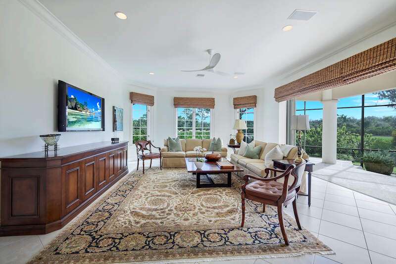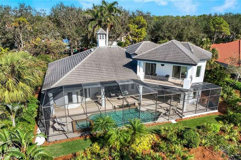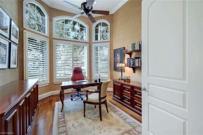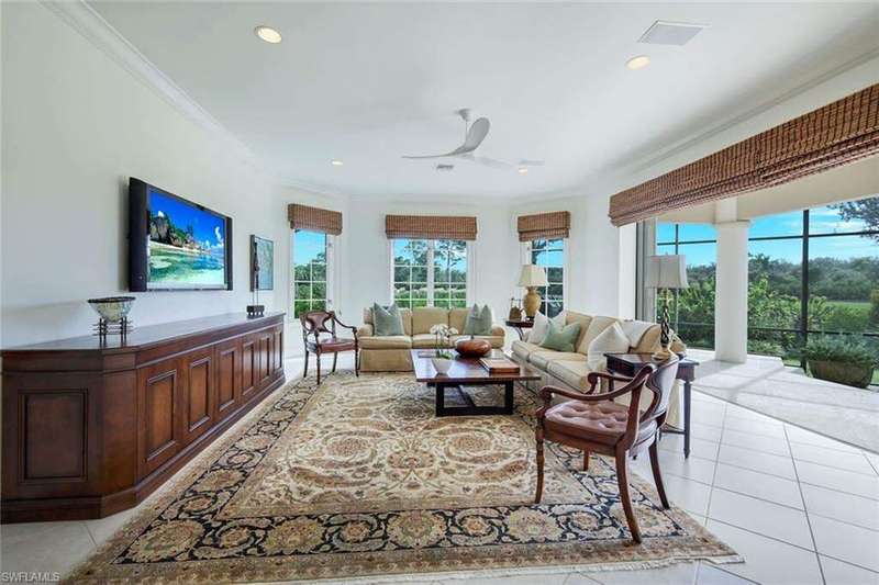 A perfect canvas for luxury living on coveted Gormican Lane, a quiet cul-de-sac street with 26 private estates in the heart of Collier's Reserve! Sited on a premium OUT-OF-FLOOD-ZONE lot with sunny SOUTH exposure and spectacular PANORAMIC GOLF VISTAS, this custom-built residence fuses good scale with mindful details, an abundance of natural light and contextual architecture that speaks to its surroundings. The two-story design lives like a ranch where the floor plan flows organically, with two bedrooms offering privacy on the upper level while the owner's suite, another bedroom suite, an office and seamless day-to-day spaces make up 3400 SF of no-stairs living. An expansive lanai with ample seating, lounging, al-fresco dining and BBQ areas around a renovated 32' pool w/ spa is the ideal setting to host family and friends. The remastered chef's kitchen with butler's pantry and SubZero & Wolf appliances incl. 6-burner gas range lives up to its oft-touted billing as heart of the home. The remodeled owner's suite and renovated en-suite bathrooms are highlights as is the spacious office with warm wood flooring and a beautiful tray ceiling. The 2-car garage is complemented by a separate bay for your golf cart and full-wall cabinet built-ins for ample storage. Topping it all off, upgrades include a NEW FLAT-TILE ROOF, IMPACT RATED HURRICANE PROTECTION and newer AC systems. Developed by the Collier family as the first-ever Audubon International Sanctuary club, Collier's Reserve offers a full slate of golf, tennis & pickleball programs, fitness & wellness, bocce, even kayaking, complete with a fun social calendar around casual and fine dining venues. Welcome Home to Arthur Hills' Eco-Friendly Paradise!