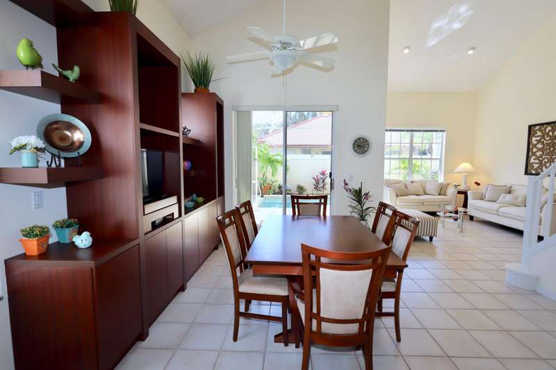 A perfect SEASONAL / OFF-SEASON rental. Meticulously kept 3 bedroom 2.1 bath home in the double gated community of Monterey Pointe. The Master bedroom is on the ground floor. Private location with private pool, screened lanai, generator, office on ground floor and two guest bedrooms plus bath upstairs. Granite kitchen. There is also a community pool. As this is a corner property it is further enhanced by additional windows allowing for natural light to abound! This is the place to be in the SEASON or the OFF SEASON...great restaurants and summer specials! NO SMOKING!