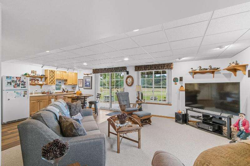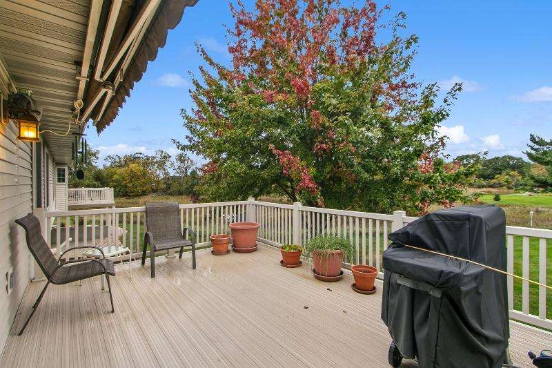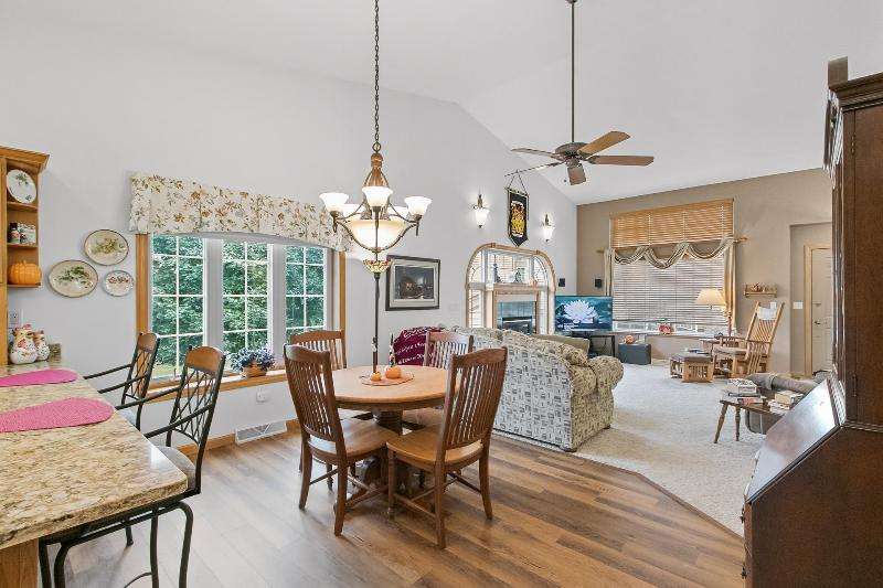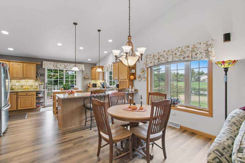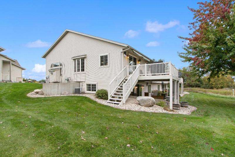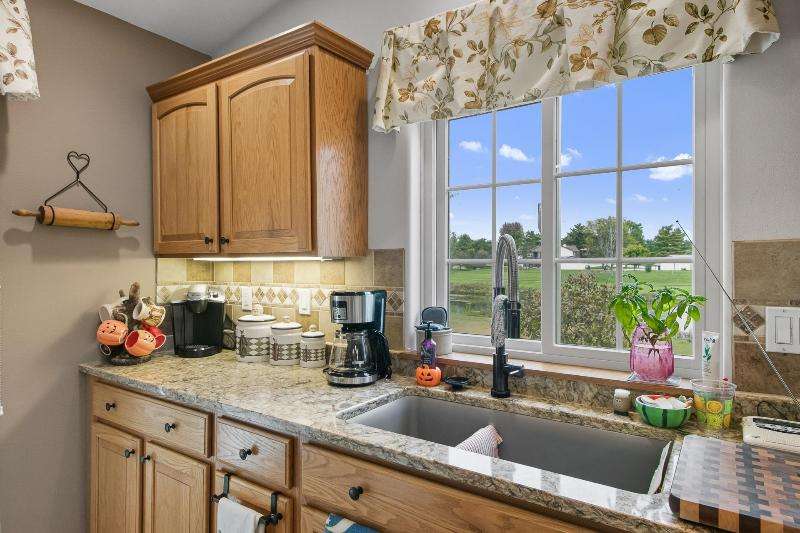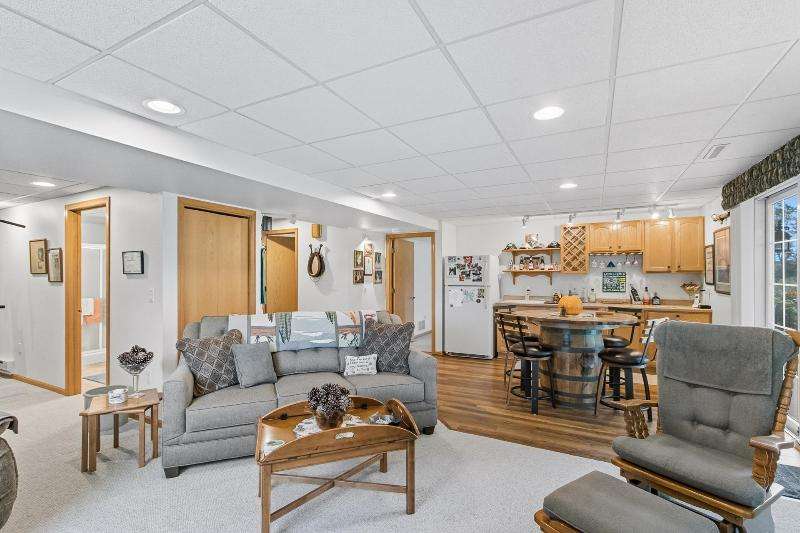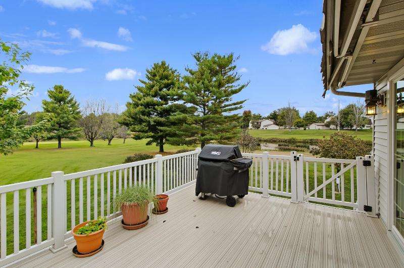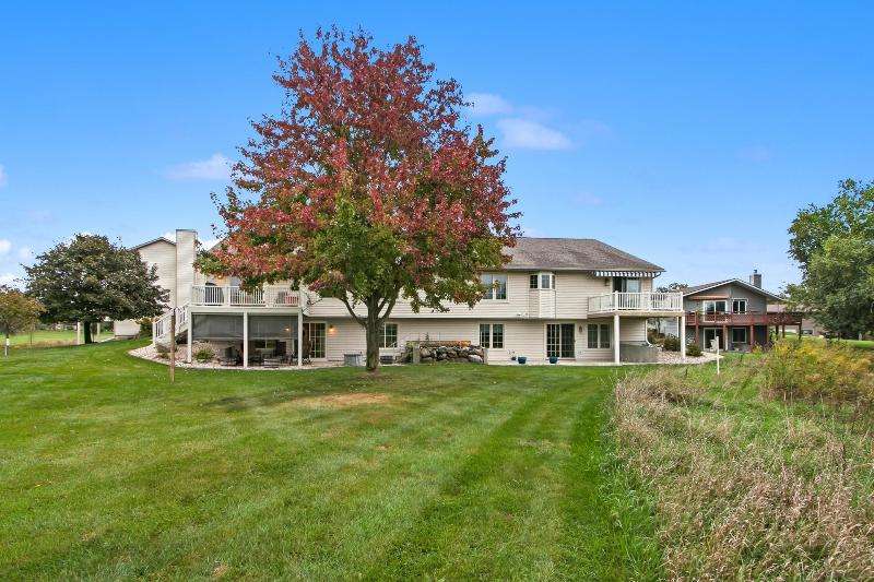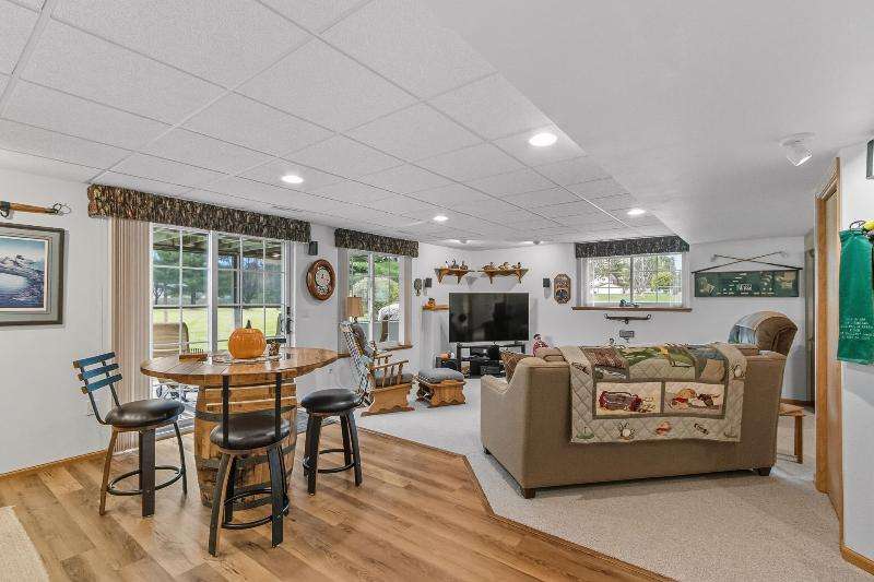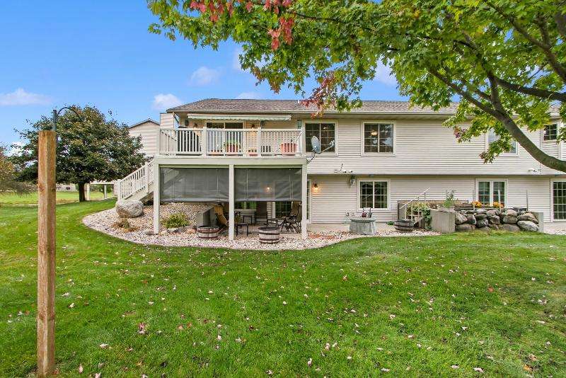 Beautiful executive style residence located on the first hole with a pond view! The perfect blend of luxury, comfort and functionality. Three bedrooms/three baths with upscale finishes and a layout designed for modern living. Spacious main bedroom suite is a true retreat with generous walk-in closet and upgraded step-in shower. LL bedroom is also generously sized with it's own walk-in closet. LL gathering space has in-floor heat, the kitchenette/wet bar area have seen lots of love and laughter over the years. Outside living spaces feature high quality poured edging, in-ground sprinkler system, retractable awning, deck larger than most with stairs down to green space. New Anderson windows/patio doors and an on-demand hot water heater. It's ALL here! www.saddleridgeestates.net