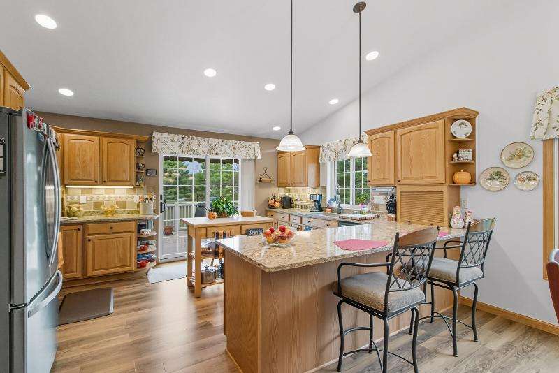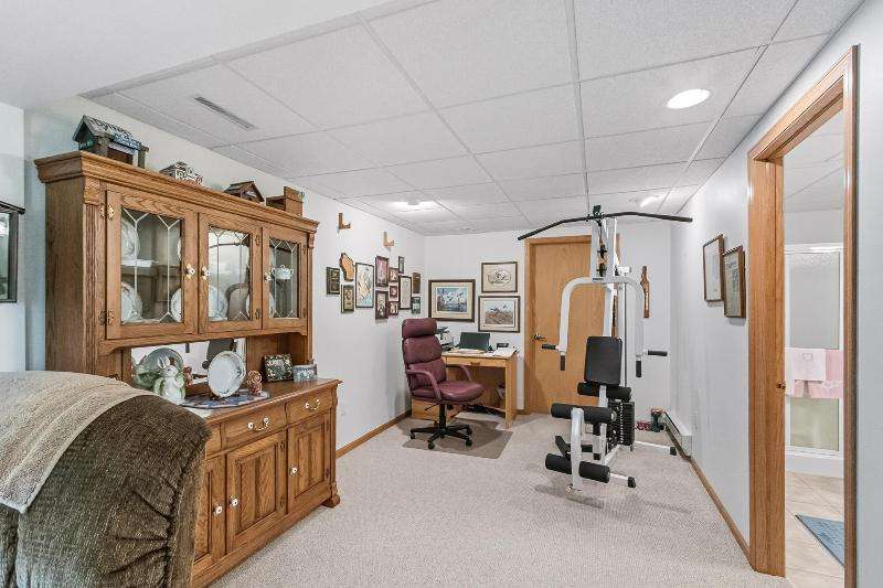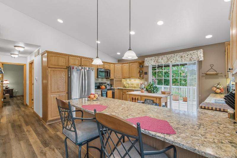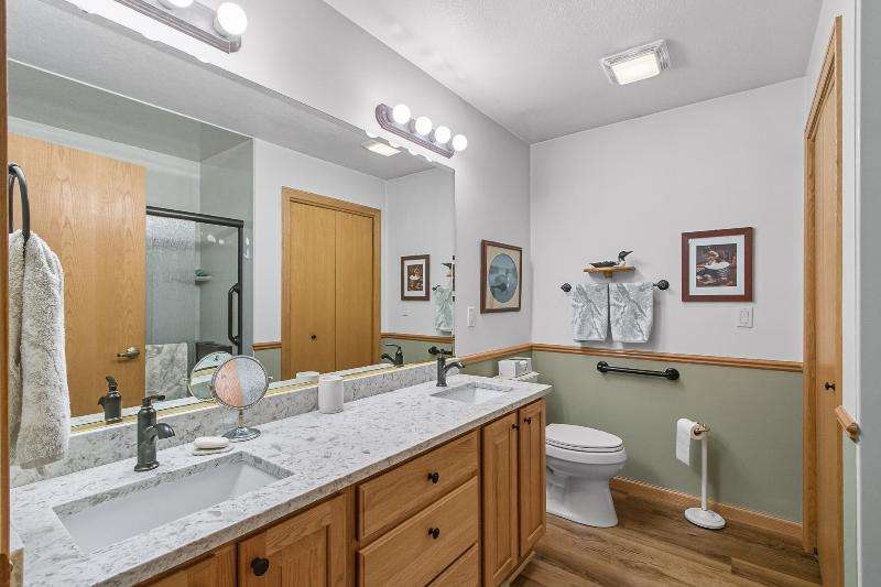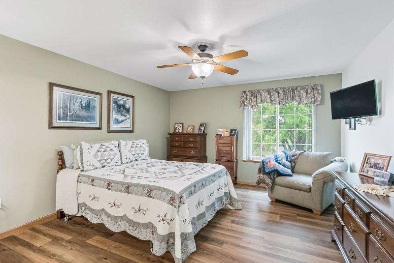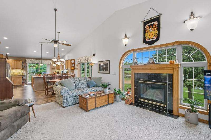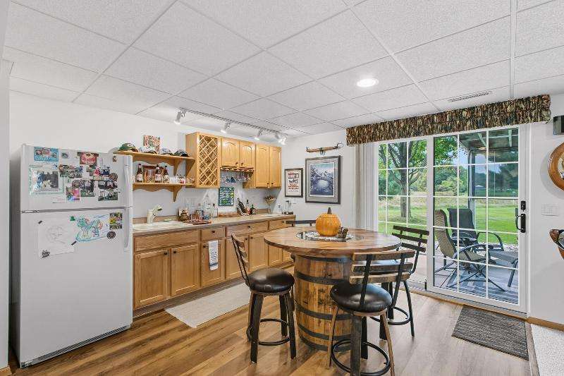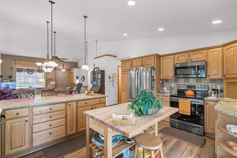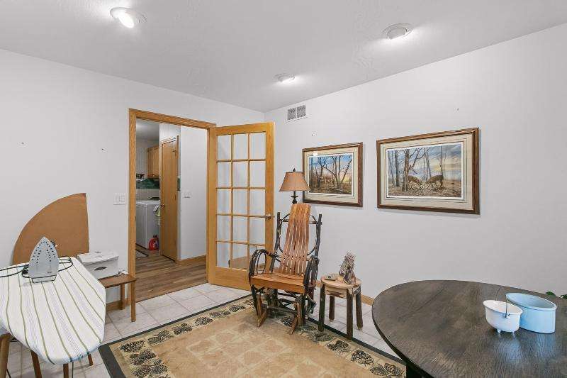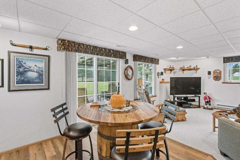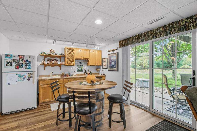 Beautiful executive style residence located on the first hole with a pond view! The perfect blend of luxury, comfort and functionality. Three bedrooms/three baths with upscale finishes and a layout designed for modern living. Spacious main bedroom suite is a true retreat with generous walk-in closet and upgraded step-in shower. LL bedroom is also generously sized with it's own walk-in closet. LL gathering space has in-floor heat, the kitchenette/wet bar area have seen lots of love and laughter over the years. Outside living spaces feature high quality poured edging, in-ground sprinkler system, retractable awning, deck larger than most with stairs down to green space. New Anderson windows/patio doors and an on-demand hot water heater. It's ALL here! www.saddleridgeestates.net