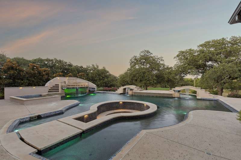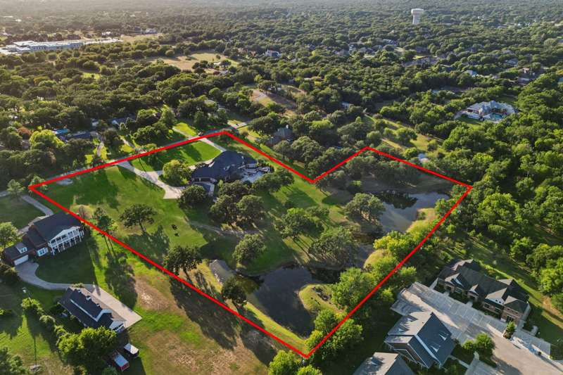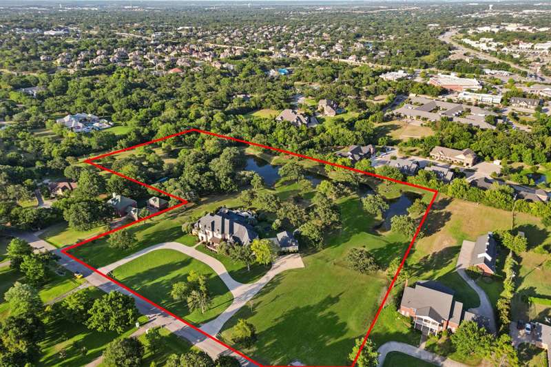 Welcome Home to this amazing estate on 7 acres of sprawling, tree-filled land and backing to its own private ponds. Enter the impressive circular drive, to approach this custom-built and Fully Updated home! Complete with modern finishes, designer hardware and lighting, freshly painted, refinished wood floors and spacious living spaces, this gorgeous home impresses at every turn. Large Family Room, open to the Kitchen with large island and Breakfast Room with gorgeous custom cabinetry and laser cut marble backsplash! Huge 16x10 Prep Kitchen is complete with fridge-freezer, double oven and a dishwasher. Executive Study overlooks the incredible backyard, as does the Primary Suite with sitting area, dream Spa Bath and oversized closet. Private Guest Suite at the opposite end of the home along with a spacious game room just off of the outdoor living area. This 6 bedroom home delivers top-end finishes, including Thermador appliances and Miele coffee maker, designer selections, along with an oversized Wine Grotto to house your private collection. The 6th bedroom upstairs is currently being used as a Exercise room with commercial grade rubber floor and exercise mirrors. Vacation in your own backyard that boasts 7 lush acres with 2 private stocked ponds, tons of mature trees, open grass space + the Resort Style Pool of your dreams with Waterfalls, a Spa, water features, lazy river area, and sunken fire pit that will surely impress all of your family and guests. The backyard also has a playground with in-ground trampoline, plus numerous stone pathways through the charming gardens. 4 car attached garage with an additional separate 2 car garage. Property has 2 wells, one for irrigation and the other for pond water level maintenance. Gated backyard is like living in the country, but right in the heart of Southlake!!!