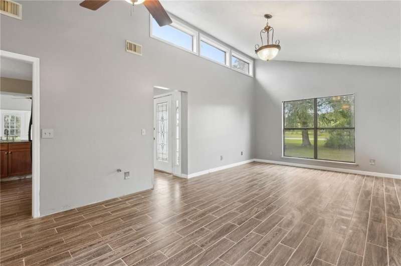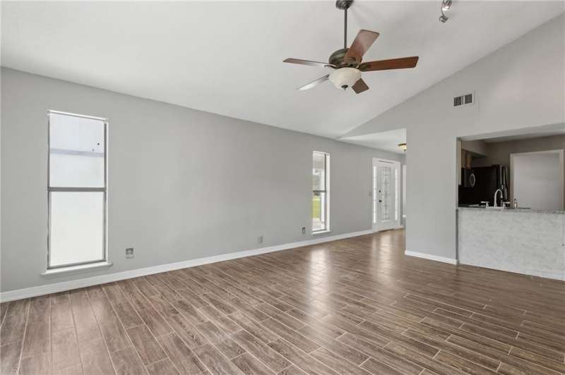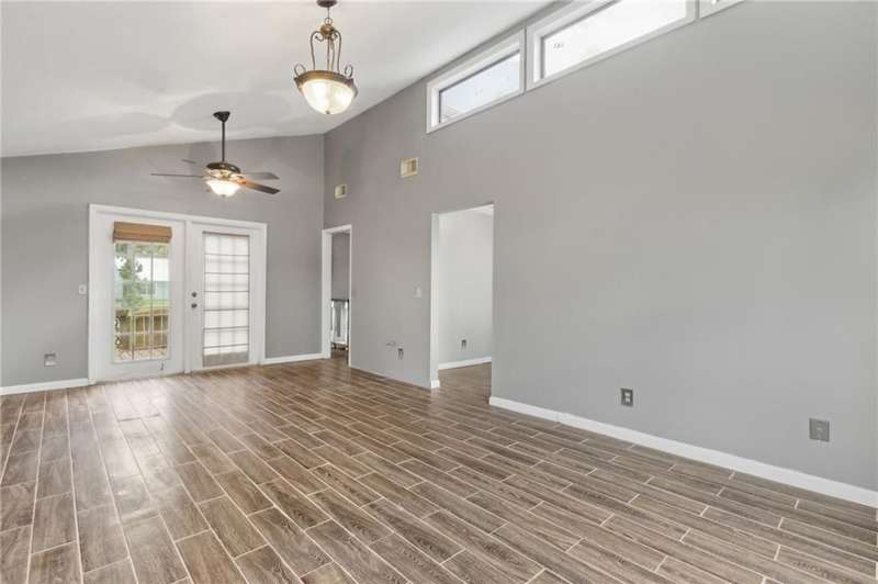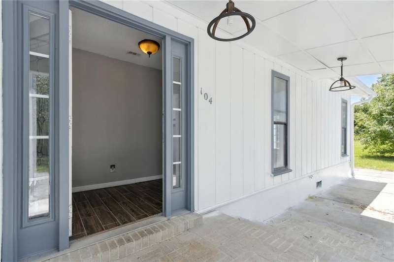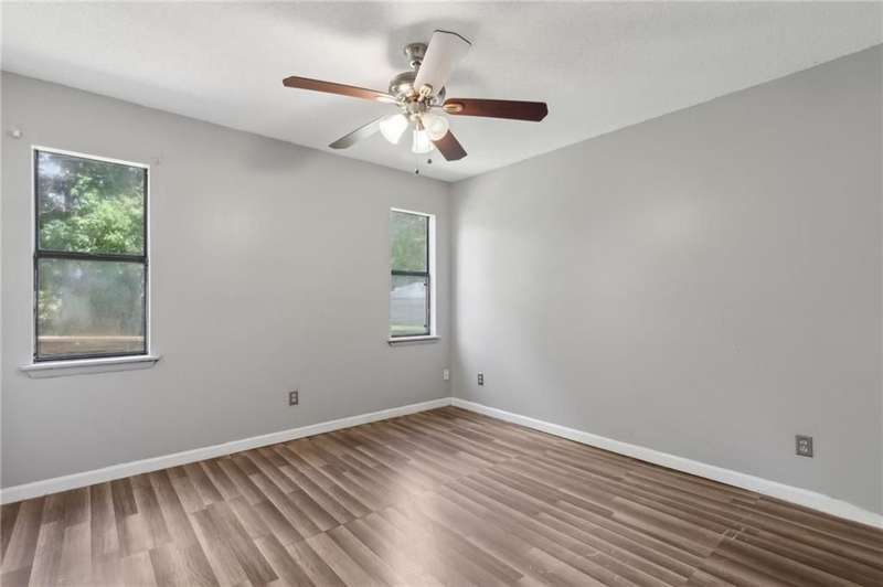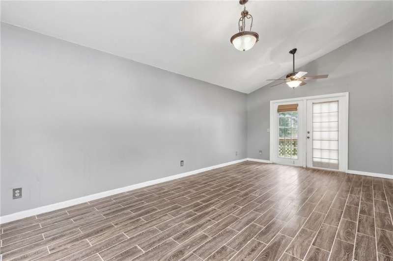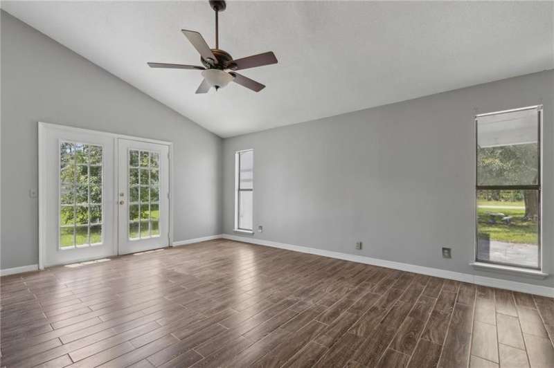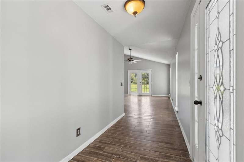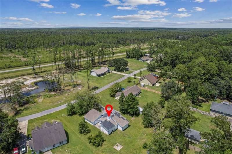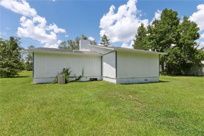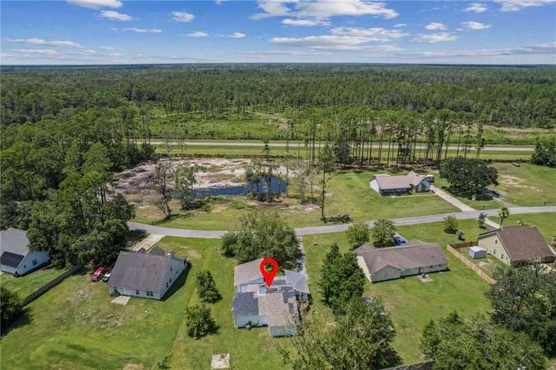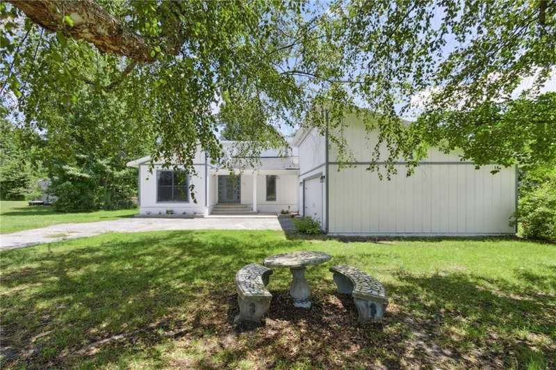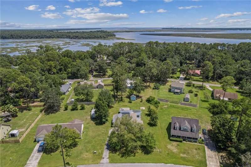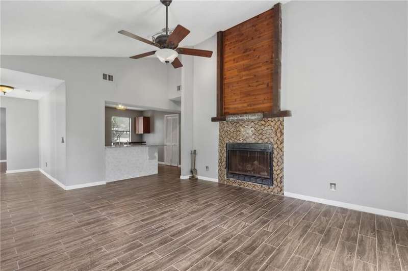 This one-of-a-kind lean-to style home showcases unique architectural character and a smart, functional interior layout. A spacious front porch welcomes you, along with a detached two-car garage offering plenty of storage and parking. Step inside to a semi-open floor plan featuring two flexible living areas that can be used as a living room, family room, dining area, media space - or whatever suits your lifestyle. High-set windows bring in beautiful natural light while maintaining your privacy. The home features wood-look tile flooring in the living areas and kitchen, with laminate in the bedrooms. The primary suite includes a private en suite with a tiled shower. Enjoy cozy evenings by the wood-burning fireplace in the living room. The kitchen is well-appointed with stainless steel/black appliances and solid surface countertops. Located just minutes from the public boat ramp and outside city limits - enjoy the benefits of no city taxes while staying close to everything you need.