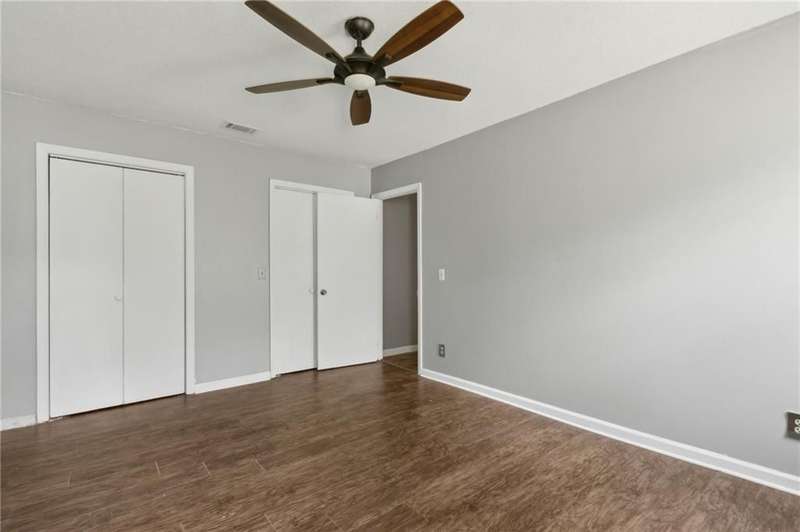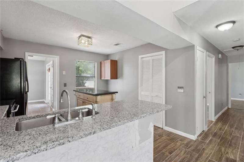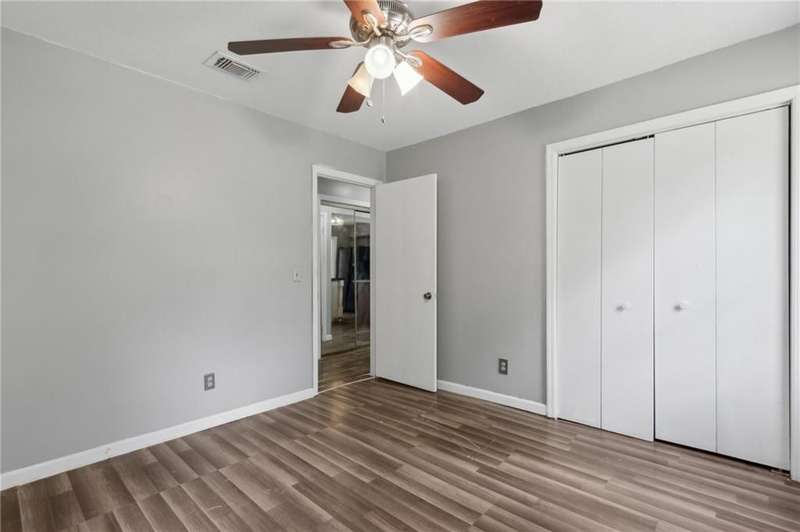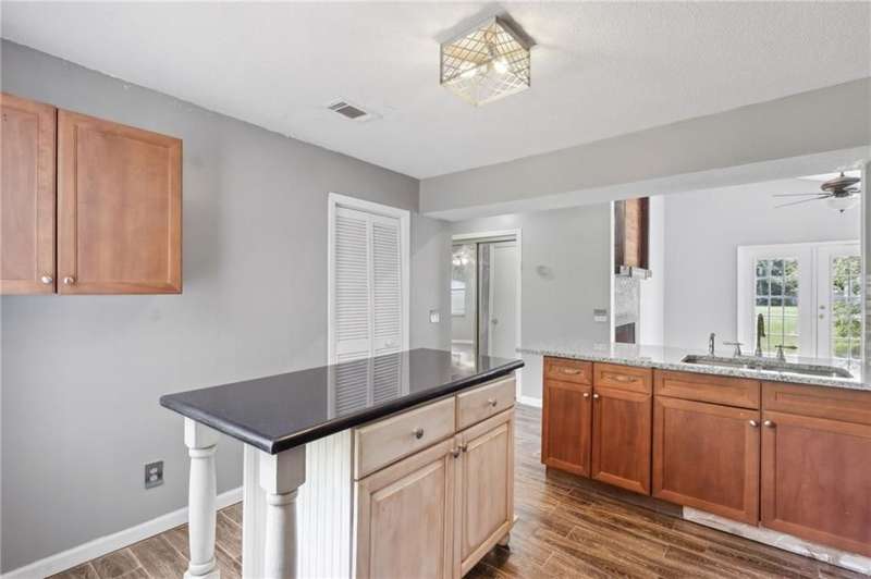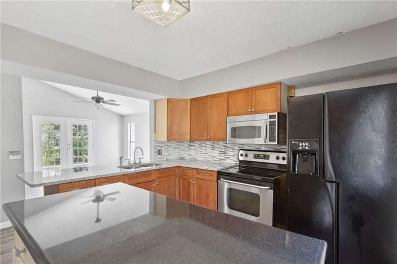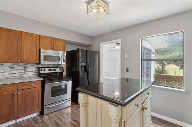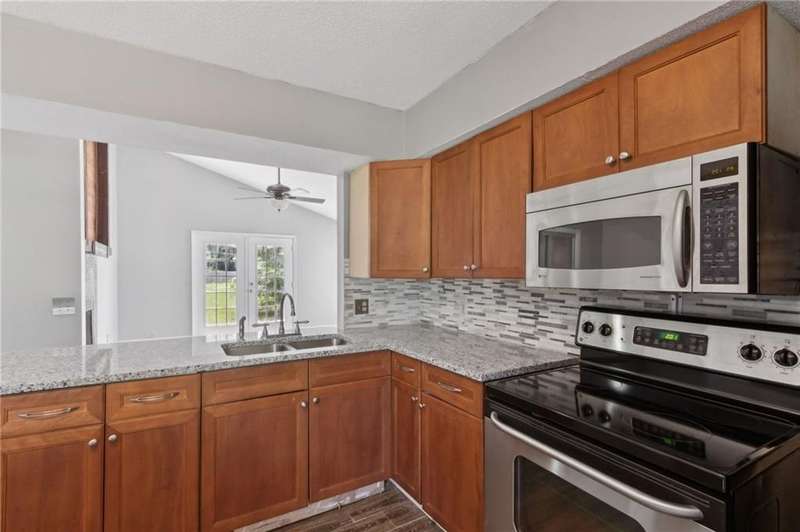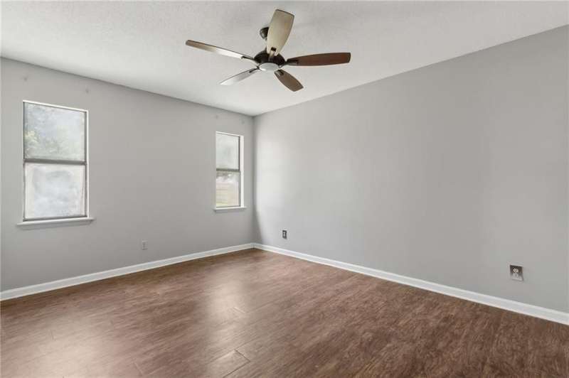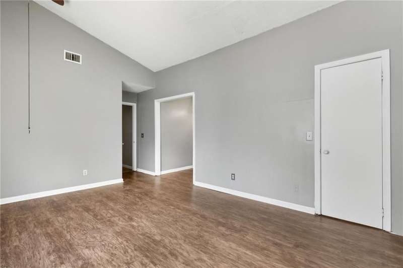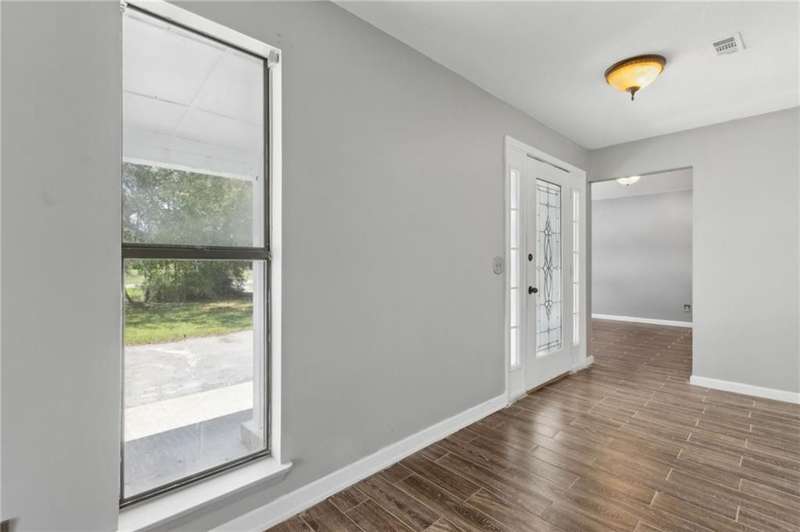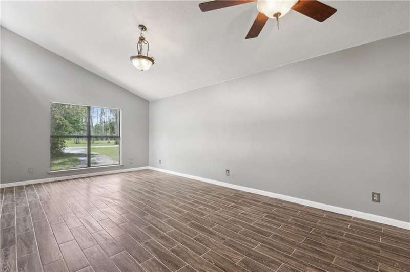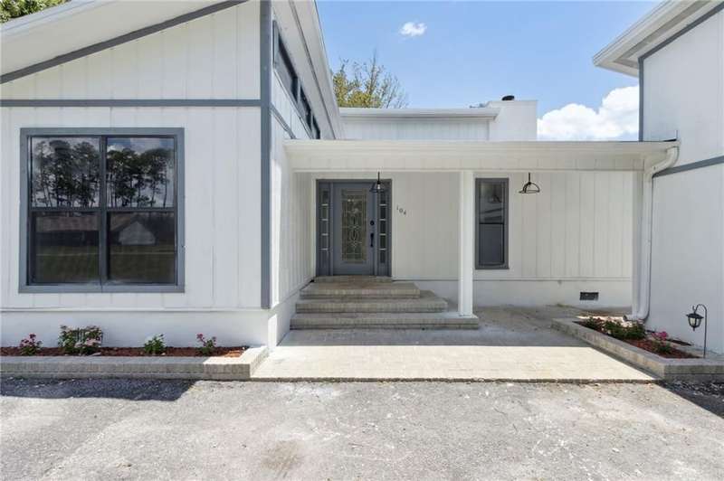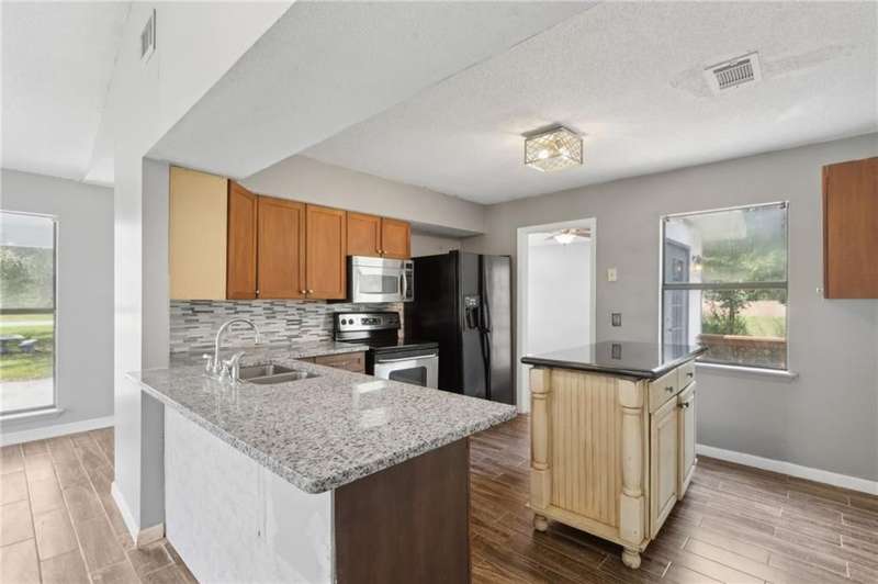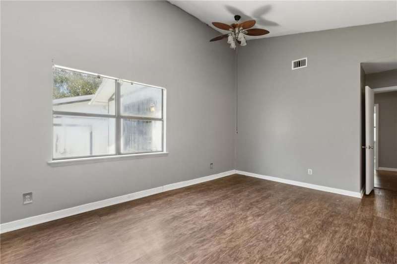 This one-of-a-kind lean-to style home showcases unique architectural character and a smart, functional interior layout. A spacious front porch welcomes you, along with a detached two-car garage offering plenty of storage and parking. Step inside to a semi-open floor plan featuring two flexible living areas that can be used as a living room, family room, dining area, media space - or whatever suits your lifestyle. High-set windows bring in beautiful natural light while maintaining your privacy. The home features wood-look tile flooring in the living areas and kitchen, with laminate in the bedrooms. The primary suite includes a private en suite with a tiled shower. Enjoy cozy evenings by the wood-burning fireplace in the living room. The kitchen is well-appointed with stainless steel/black appliances and solid surface countertops. Located just minutes from the public boat ramp and outside city limits - enjoy the benefits of no city taxes while staying close to everything you need.