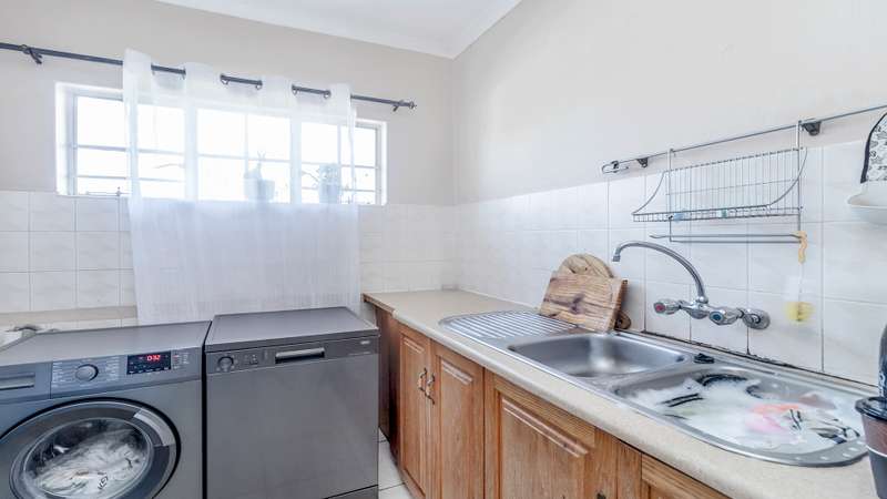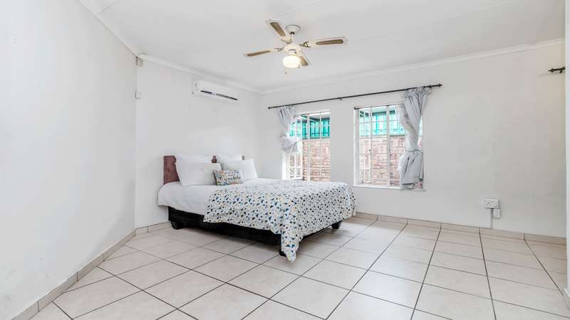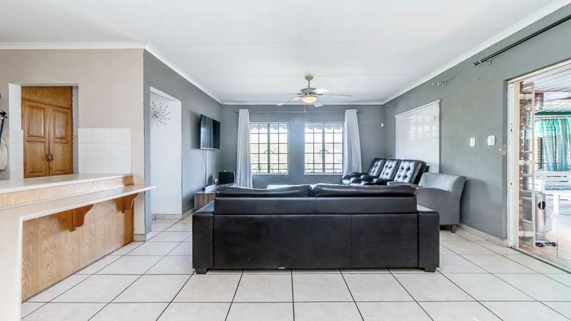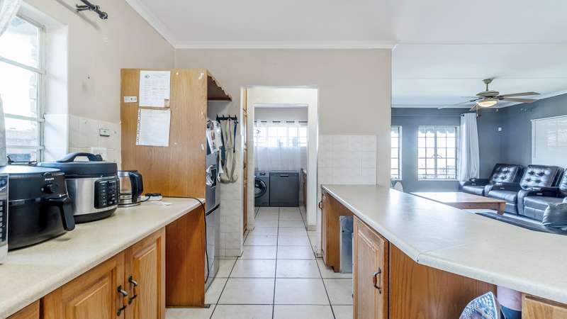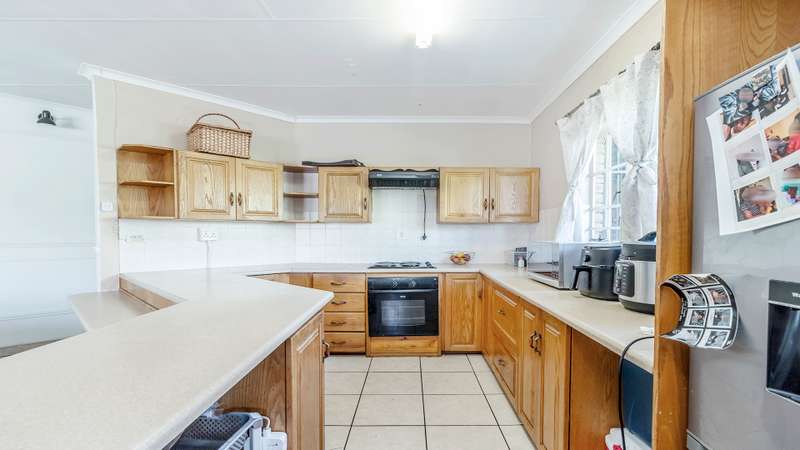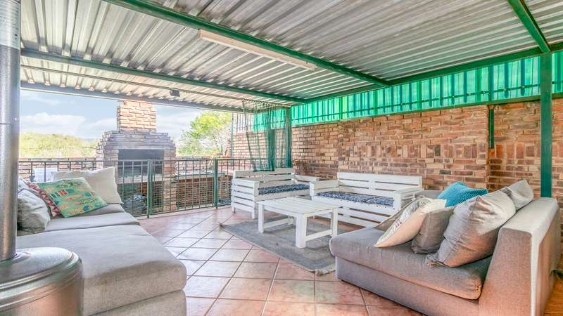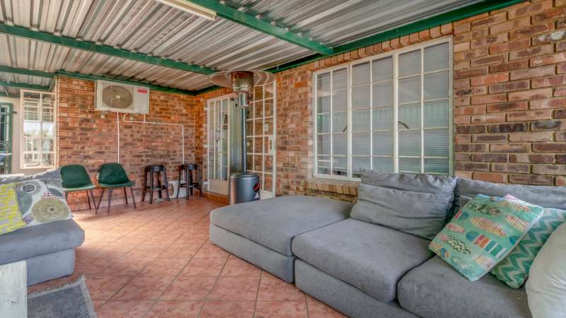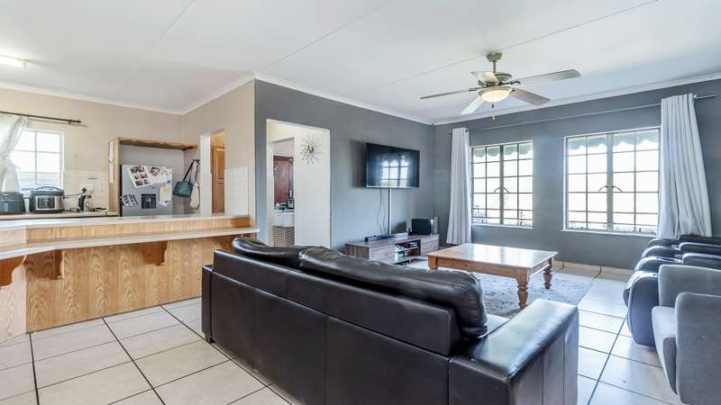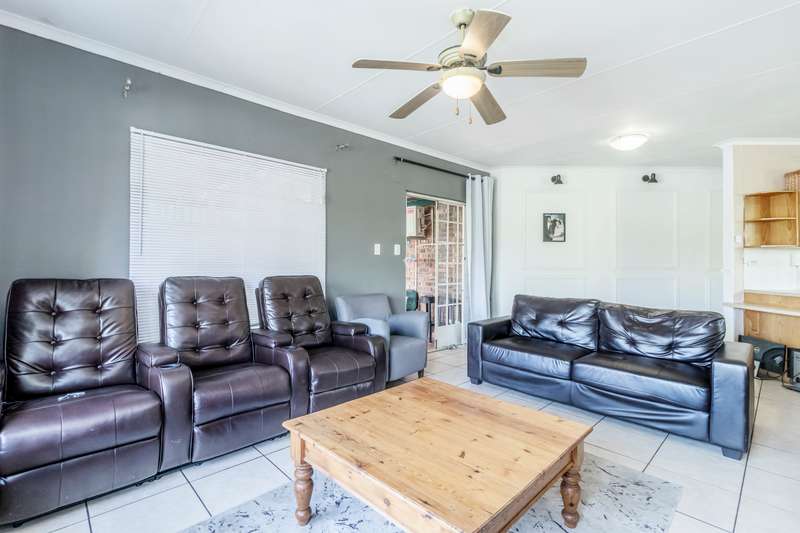 This versatile property offers 2 spacious bedrooms inside, with the main bedroom featuring an en-suite bathroom, as well as a second family bathroom. The garage has been cleverly converted into a third bedroom with its own en-suite, perfect for guests, extended family, or a rental option. Enjoy open-plan living with a spacious kitchen and separate scullery, flowing into the lounge and out onto a large, covered patio with a built-in braai — ideal for year-round entertaining. Additional features include a 5kva inverter and 5kva battery, 3 carports, an alarm system, and fingerprint access at the front entrance for enhanced security