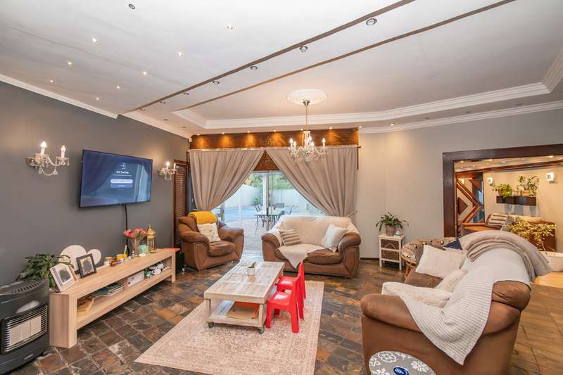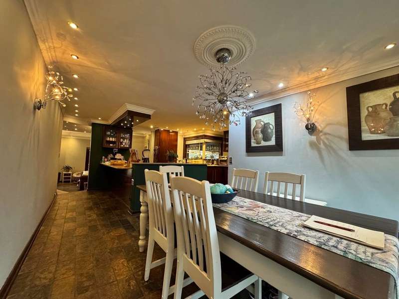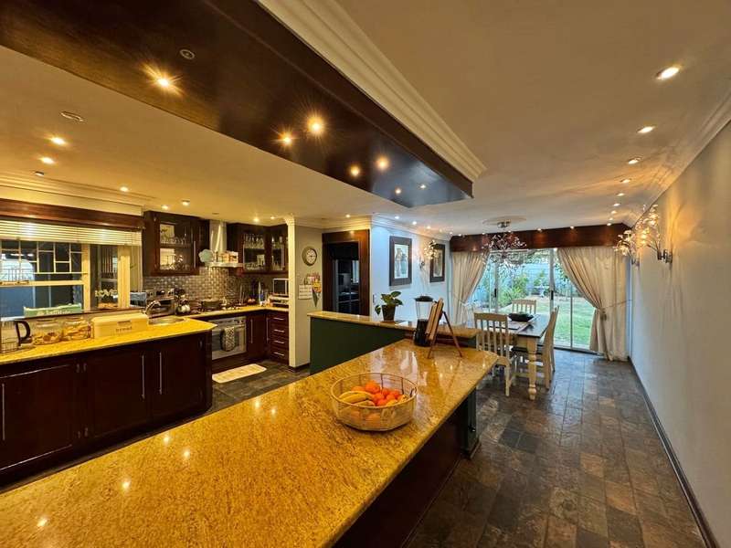 ***EXCLUSIVE MANDATE*** Step into this modern, inviting, and generously sized family home, where comfort and functionality meet stylish living. As you enter, you're welcomed by a spacious open-plan living and TV room — ideal for relaxing or hosting friends and family. The heart of the home is the beautifully designed kitchen with an adjacent dining area, complete with a separate scullery and laundry room. Perfect for entertainers and home chefs alike, the kitchen features a gas hob and a double eye-level oven. A dedicated study provides the perfect space for remote work, studying, or a quiet retreat. All four bedrooms are generously sized and fitted with built-in cupboards, offering ample storage. The main bedroom boasts an en-suite bathroom, while the remaining three bedrooms share a full, well-appointed bathroom with a separate toilet. Outdoor living is a breeze with an undercover patio featuring a louvre roof and built-in braai, situated next to the sparkling swimming pool — ideal for hot summer days. The property also includes a Wendy house for additional storage. Additional features include garaging for three cars, a double carport, and a double shade-port for trailers and boats. A JoJo tank with a pump ensures water security during dry periods, offering convenience and peace of mind. This exceptional property offers the perfect blend of space, practicality, and lifestyle appeal. Don’t miss your chance to make this beautiful house your forever home. Call Johann du Plessis today for a viewing.