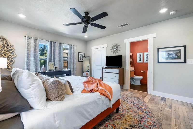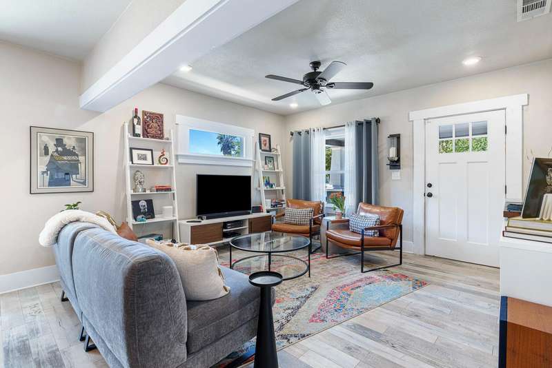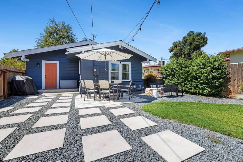 In the heart of the Tower District is this beautiful updated 3 bedroom 2 bathroom 1920 Craftsman style home. The sweet front porch accents the historic charm of this home and leads you into the open concept living areas of the house. The living room is open and airy and flows into the dinning room that has an abundance of light from the beautiful french doors. The kitchen boasts quartz countertops, stainless steel appliances and a GE 4 burner gas stove with griddle for the chef in the family. A large primary bedroom with updated bathroom. Two more bedrooms and full updated bathroom.The house is equipped with newer central heating and air unit. Newer electrical box and wiring throughout the house for comfort and safety.Enjoy the private, fenced backyard ideal for relaxing or entertaining. Plus a detached 2 car garage. Walking distance to shops, dining, and entertainment. Also close to Fresno High and City College.
