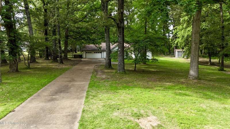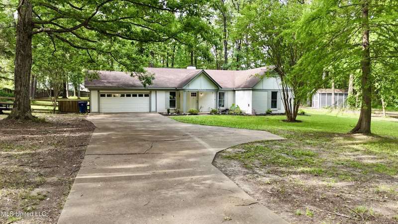 This beautifully updated and move-in-ready home offers the perfect blend of charm, space, and modern comfort--all nestled on a peaceful 1.5-acre lot filled with mature shade trees, a koi pond, and plenty of room to enjoy the outdoors. Located just minutes from Southaven, Silo Square, and centrally positioned in Desoto County, this one-level home offers the ideal mix of rural serenity and city convenience.Inside, you'll find a thoughtfully designed layout featuring 3 spacious bedrooms, 2 fully renovated bathrooms, a home office, and a bright sunroom. The primary suite is generously sized, and the two additional bedrooms provide comfortable living space for family or guests. The large Great Room offers plenty of room for entertaining or relaxing.Recent updates include new flooring throughout, fresh interior and exterior paint, granite countertops, freshly painted cabinetry, stainless steel appliances, and modern lighting and plumbing fixtures. Each room is tastefully finished in warm, calming tones, creating a stylish and welcoming atmosphere. The dining area is highlighted by an elegant chandelier, adding a refined touch to family meals or gatherings.Step outside and enjoy the serene surroundings from your covered front porch or back patio. The property also includes a 32x16 detached shed with a 32x7 front porch that previously functioned as living quarters with a kitchen and bathroom--offering excellent potential to convert into a guest house, workshop, office, or studio with just a bit of TLC. Storage buildings and the shop are sold as-is.This home offers space, flexibility, and character both inside and out. Don't miss your chance to own a piece of peaceful living in one of Desoto County's most desirable areas. Schedule your showing today!