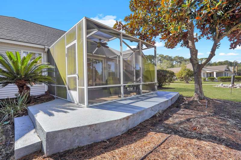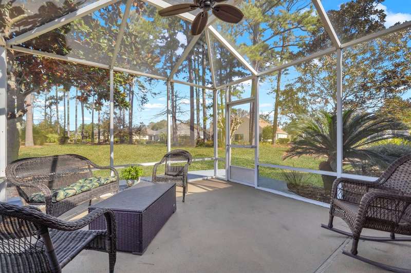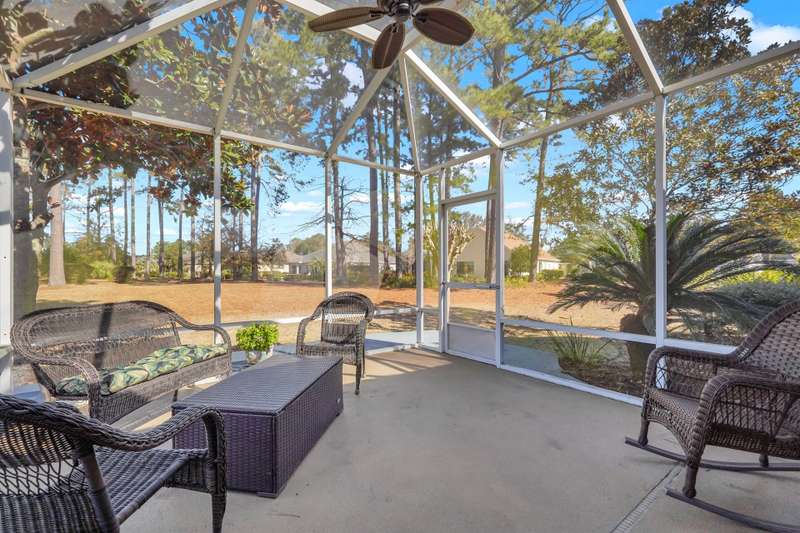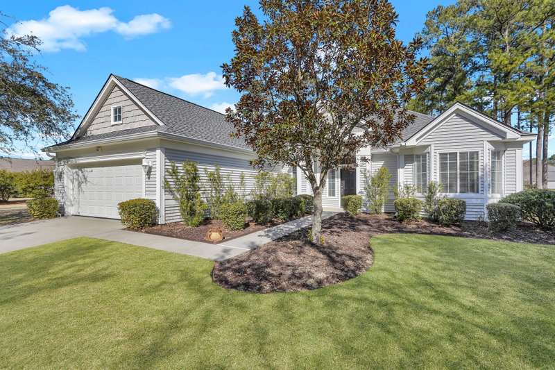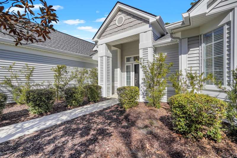 Enjoy serene views of the 8th green of the Okatie Creek golf course from this beautifully upgraded 3BD/2.5BA Charlotte Madison home in Sun City. Featuring an open-concept floor plan, this home offers a spacious great room, dining area & a Carolina room w/custom built-ins, perfect for relaxing or entertaining. The kitchen is well appointed w/stainless steel appliances, gas range & spacious pantry. Additional highlights include an oversized garage for extra storage, vinyl siding, smooth ceilings & bay windows in both the primary and guest bedrooms. This very private homesite is conveniently located b/w Town Square & Hidden Cypress.