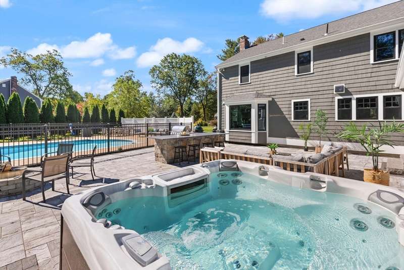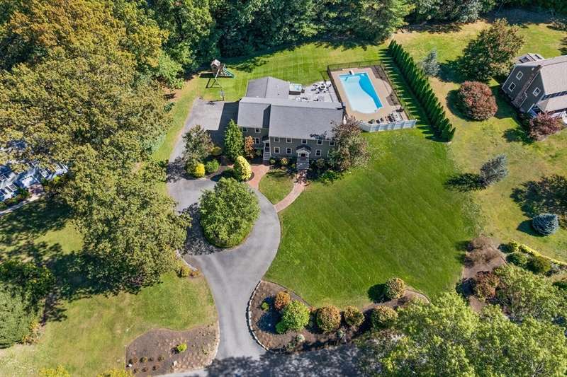 Don't mistake this home for a "Classic Colonial"; this property has been completely transformed inside and out through a meticulous and custom renovation. The result is a stunning residence featuring warm woods, crisp whites, and coastal hues. The entire property feels like a Shangri-La, set in a peaceful and welcoming neighborhood. Key features include a one-acre parcel, four-bay garage with EV charger, 5 bedrooms on the upper level, along with a guest suite on the first floor that includes a full bath and a walk-in closet. You ll also find 2 laundry rooms, 2 walk-in pantries, 2 dishwashers, and a large mudroom, among many other incredible amenities. Entertain friends and family in your own paradise, complete with an inground heated swimming pool, hot tub, fire pit, outdoor kitchen plumbed with a 36" gas grill and a built-in Big Green Egg! Plus, you'll have plenty of space for outdoor activities in your expansive yard! There's nothing to do here but move right in. A remarkable home!