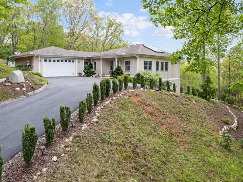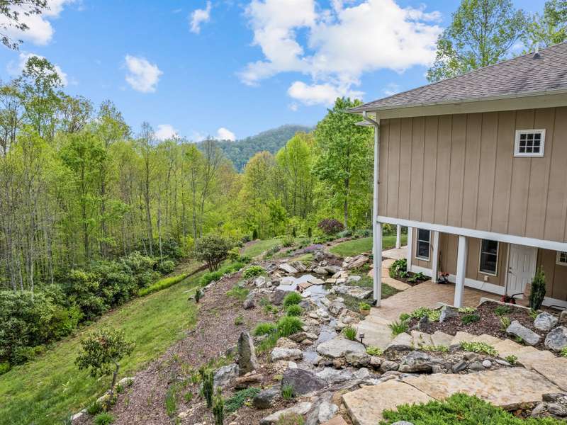 Mountain Views and Serenity abound in this 2015 Green Built, Vastu compliant modern oasis! Welcome home to pristine living that is not just a house, but a HOME. It was lovingly thought out and planned from the earth up. A welcoming porch entrance invites you to come in and takes you through a remarkable floor plan with high ceilings & peaceful living in mind. Kitchen area boasts style and elegance with custom cabinets, granite counters and stainless Energy Efficient appliances. Have your guests on the front covered porch or lower stone patios while listening to the trailing waterfall & pondless pond. Main level hosts roomy laundry & pantry area in addition to well sunlit Primary suite, bath with walk in tub & shower. Walk in closets and storage were planned and provided! Additional bedrooms will host friends & family with ease. I can't say enough about the peace and tranquility you will find here! Access to I-40 10-15 min. Waynesville 25 min, Asheville area 40 min.