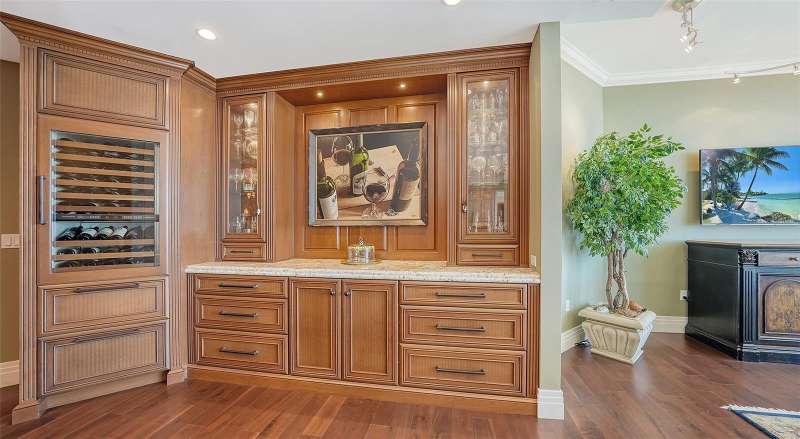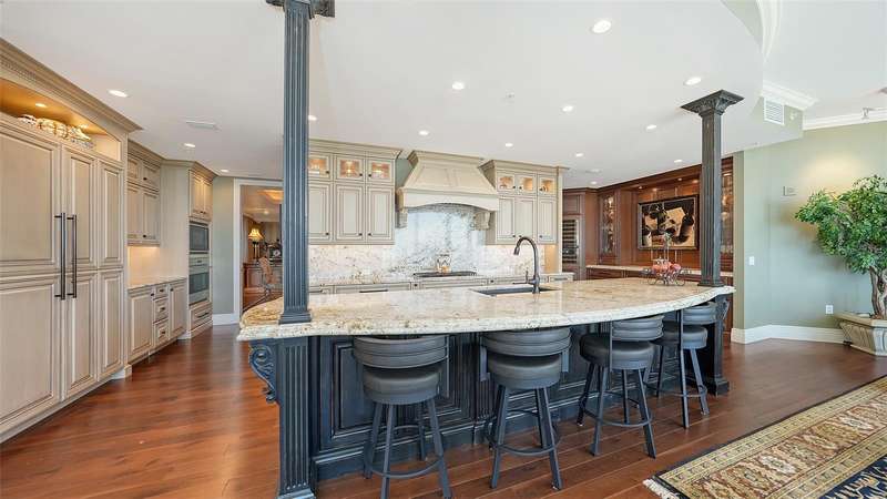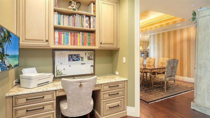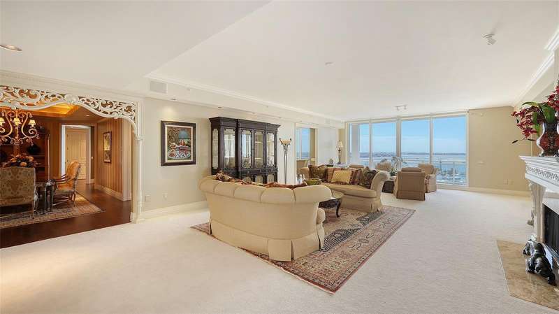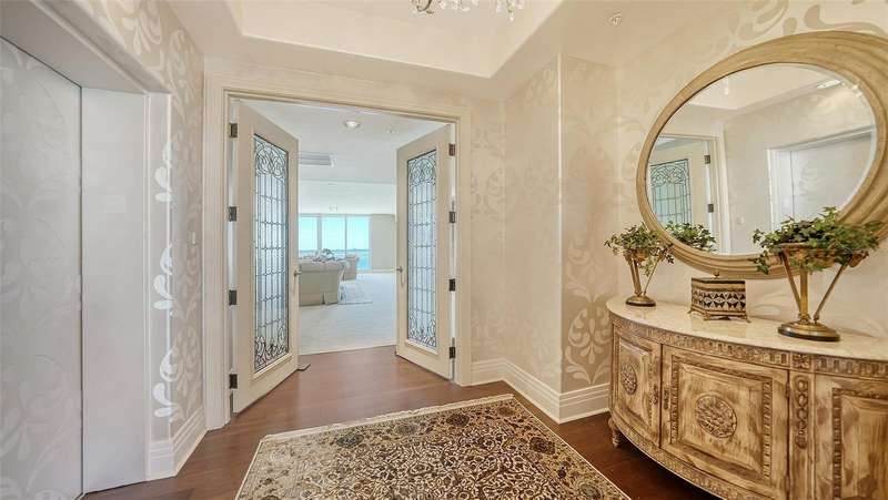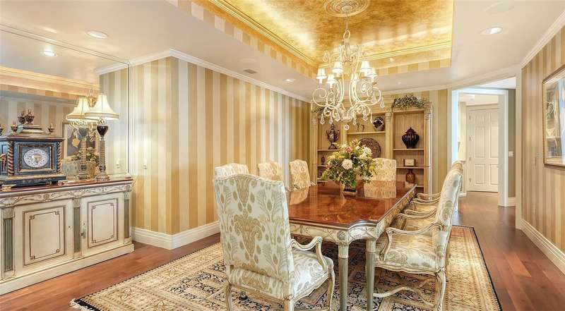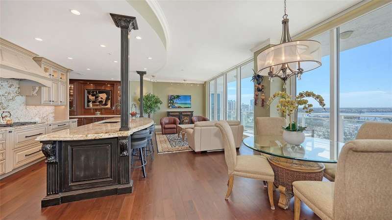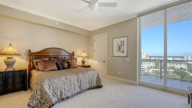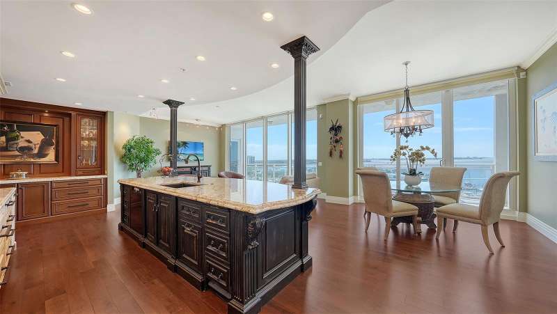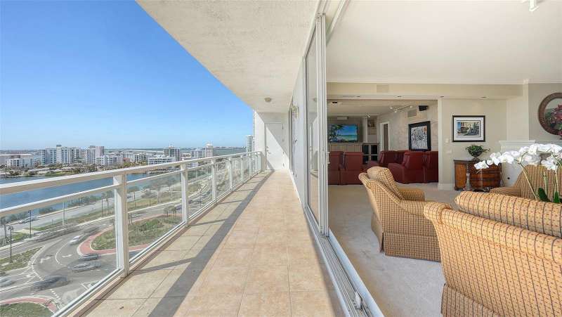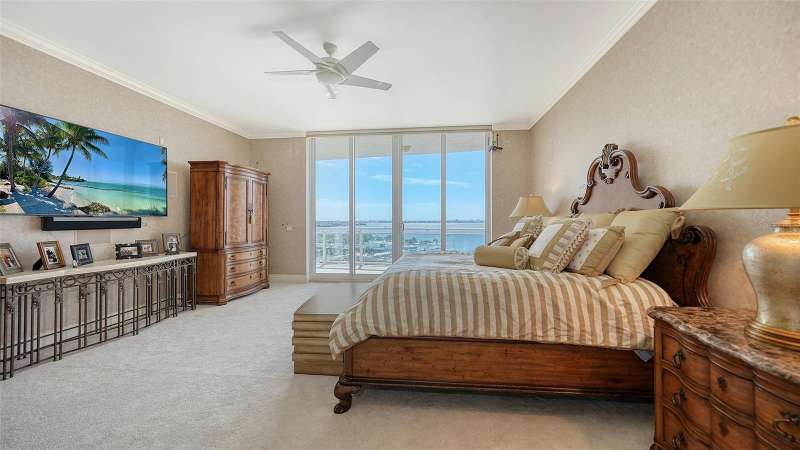 MAJOR PRICE REVISION. Marina Towers, Sarasota’s premier bayfront building is in the heart of downtown and offers 365* views of unimpeded bay, marina, gulf, and city views from this 10th floor, 5,800sf residence with an expanded terrace and high ceilings. A private elevator lobby opens into a Grand Salon featuring a gas fireplace and a wall of floor to ceiling windows overlooking the picturesque vistas. The large rooms throughout the residence with endless panoramic viewpoints make this a unique living experience. Delight in a gourmet chef's kitchen highlighted with top-of-the-line appliances including a Wolf gas range, Wolf ovens, Miele dishwasher and a Sub Zero refrigerator and a large pantry closet. A separate catering kitchen is perfect when entertaining larger groups, and spacious dining room and separate intimate dining space are ideal for family gatherings or intimate dinners. The bar area includes a handsome built-in wine cellar. A home theater and the family living areas are well-designed for everyday living. The floor plan lives like a sizable home accommodating 4-bedrooms, 3 en suite plus an oversized den/office with views for everyone. The primary suite has two large walk-in closets and a spacious bathroom. Both the primary and secondary suites overlook Sarasota Bay. Marina Tower offers the epitome of contemporary living in our vibrant bayfront city, boasting full-service amenities including 24-hour concierge and security. This is a pet-friendly, amenity-rich community featuring a chic outdoor heated pool/spa area, fitness center, and a community room with catering kitchen. Additionally, owners have access to a guest suite. This pet friendly community allows two pets with no weight limit. Clever building design allows owners to drive into the gated building, with concierge service available to assist with shopping bags and packages. Added unique features are room-size storage areas plus four secured parking spaces. Sarasota Bay’s famous sunsets and sparkling blue water as far as the eye can see with the heart of Downtown Sarasota, abundant dining, shopping, and entertainment mere steps away.