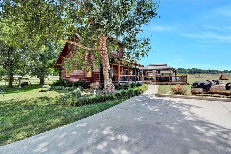Welcome to your dream homestead ? a stunning 3-bedroom, 2-bath log cabin nestled on 24 acres of picturesque, fertile pastureland in Gray Court, SC. Located just off Exit 19 and a short drive from the vibrant city of Greenville, this property offers the perfect blend of peaceful rural living with city convenience just minutes away.Whether you're seeking a private family farm, equestrian estate, or income-producing property, the possibilities here are truly endless. The land boasts rich soil ideal for farming, a private pond, and gorgeous open views in every direction. Perfect for those wanting to raise horses, cattle, or grow their own crops, this property offers ample room to bring your agricultural vision to life.Sustainability is a key highlight here: solar panels installed on the barn power both the log cabin and barn, delivering impressive energy efficiency and eliminating your monthly power bill. The property includes a 6-stall horse barn with water and electricity, a detached 3-car garage, and several functional outbuildings ? ideal for storage, workshops, animal care, or equipment.The log cabin, crafted from solid cedar, is full of rustic character with modern comforts. Step inside to find granite countertops, a cozy wood-burning stove, and beautiful custom wood carvings of bears on the ceiling beams in the living room ? an artisan's unique touch that adds to the warm, lodge-like ambiance. Vaulted ceilings and natural wood finishes create a timeless and welcoming feel throughout the home.All kitchen appliances convey with the sale, making this move-in ready. The outdoor living space is equally inviting: enjoy a soak in the hot tub beneath a charming pergola, perfect for relaxing evenings or entertaining guests under the stars.