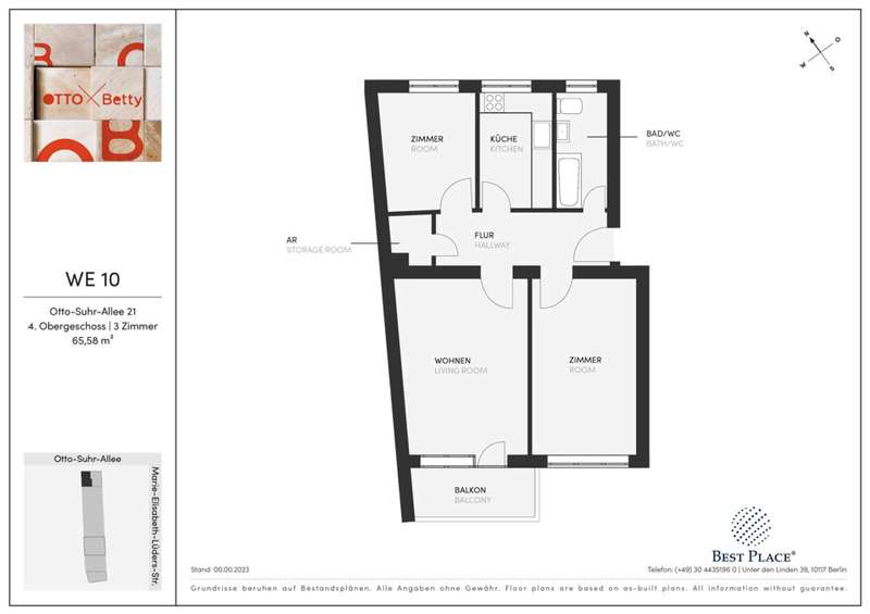 This efficiently designed flat on the 4th floor offers modern comfort. It has three rooms, approx. 66 sqm and is therefore a practical and sought-after flat size. The centrepiece of the flat is the living room, which offers access to the balcony overlooking the inner courtyard. Both the living room and the balcony face south-west - residents can enjoy the evening sun here. As the bedroom also faces the inner courtyard, it is the perfect place to relax. The third room can be used as a children's room, study or guest room. In the daylight bathroom, a bathtub offers a wellness feeling and the kitchen provides space for a breakfast nook or dining table. A storeroom provides storage space and convenience.