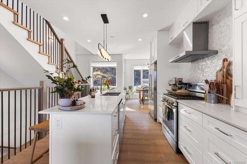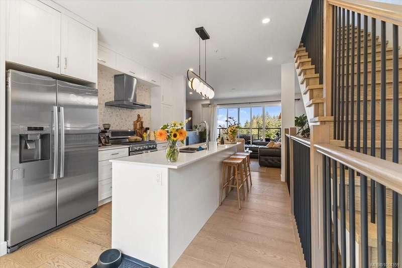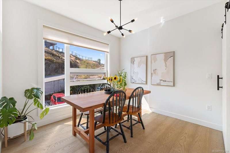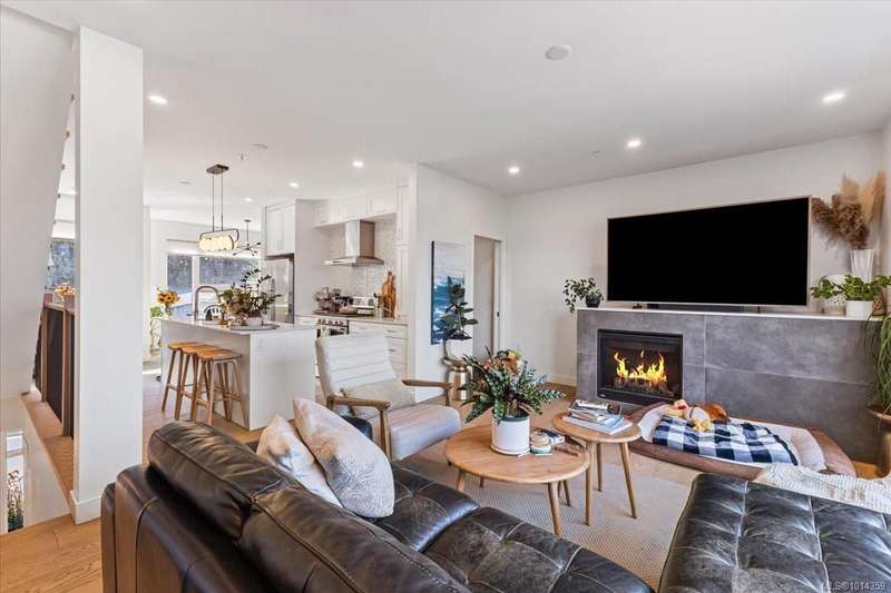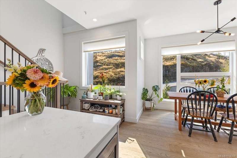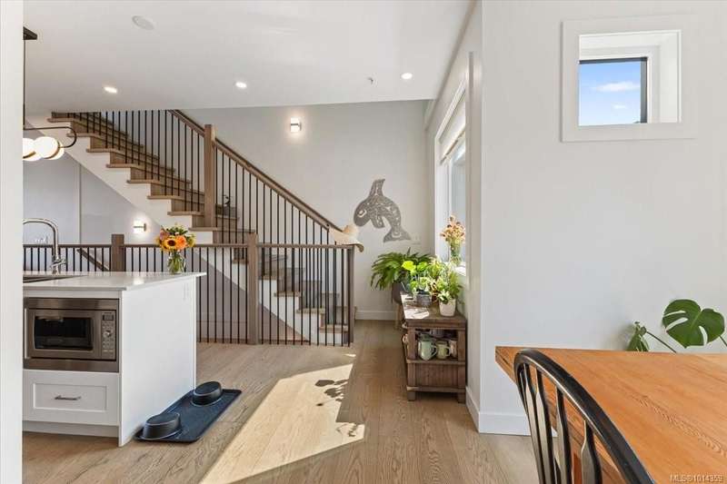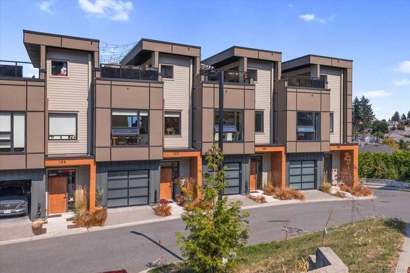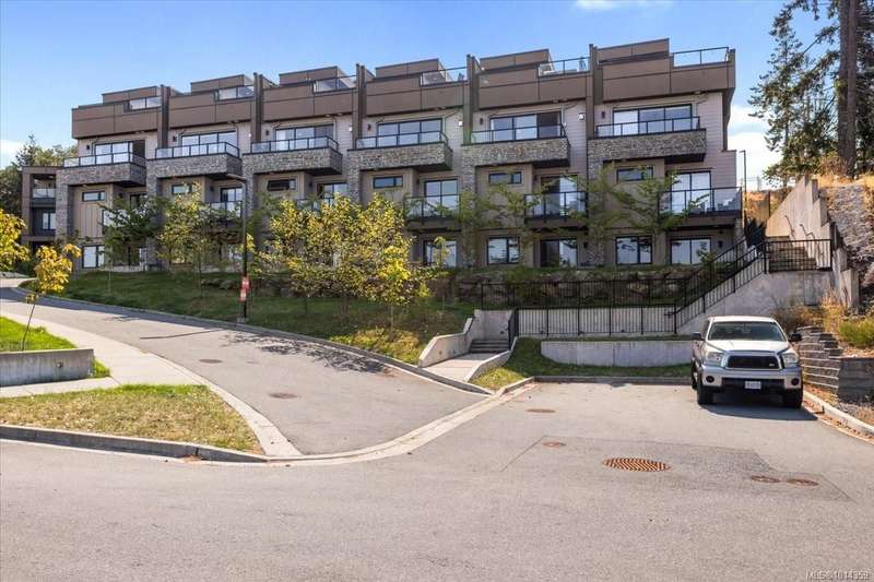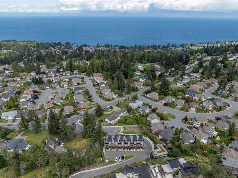 Experience breathtaking ocean and mountain views from this modern North Nanaimo townhouse, complete with a 700 sqft rooftop patio designed for entertaining or relaxing in style. Offering 1,667 sqft across three levels, this 3-bedroom, 3-bathroom home combines thoughtful design with modern finishes. The main level showcases an open-concept kitchen, dining, and living area with balcony access, large windows, and abundant natural light. The entry-level primary suite includes a private balcony, walk-in closet, and spa-inspired 5-pc ensuite with a soaker tub. The lower level features a spacious second bedroom with walk-in closet, a 5-pc bath, office and laundry room. Every floor offers balcony access to maximize the sweeping views. Located near Linley Valley trails, shopping, transit, and Nanaimo North Town Centre, this home blends luxury with everyday convenience in one of Nanaimo's most desirable neighbourhoods.