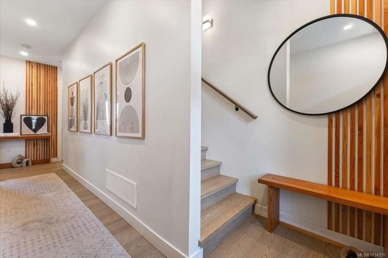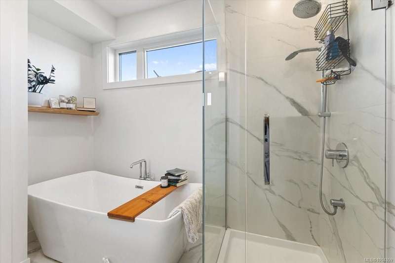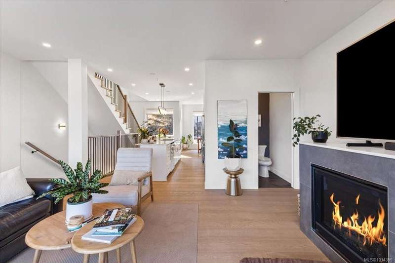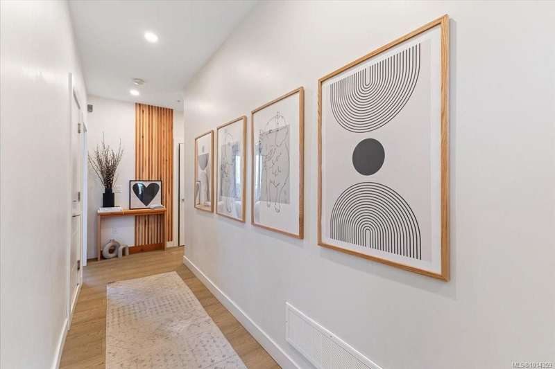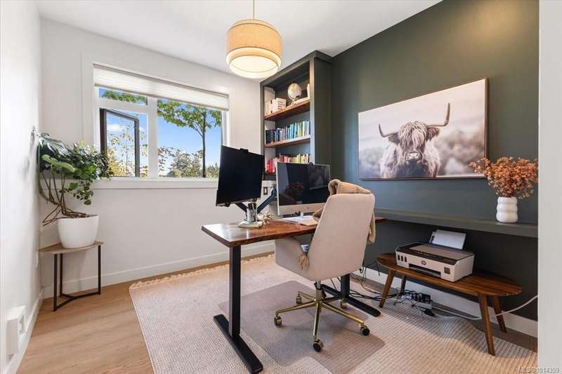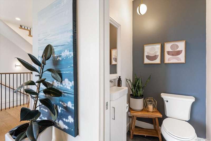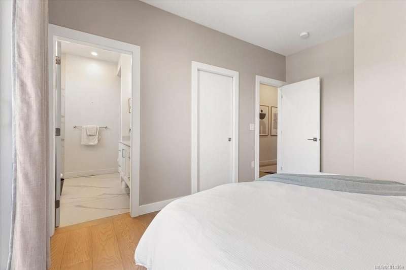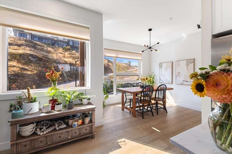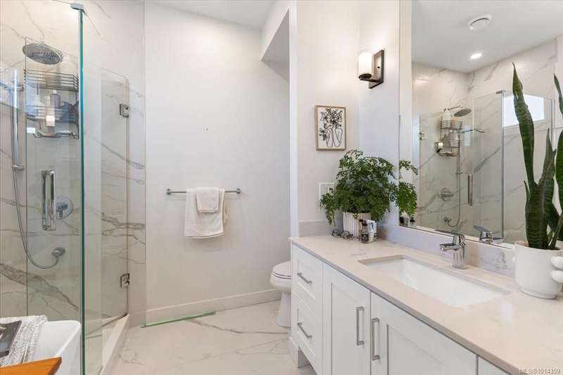 Experience breathtaking ocean and mountain views from this modern North Nanaimo townhouse, complete with a 700 sqft rooftop patio designed for entertaining or relaxing in style. Offering 1,667 sqft across three levels, this 3-bedroom, 3-bathroom home combines thoughtful design with modern finishes. The main level showcases an open-concept kitchen, dining, and living area with balcony access, large windows, and abundant natural light. The entry-level primary suite includes a private balcony, walk-in closet, and spa-inspired 5-pc ensuite with a soaker tub. The lower level features a spacious second bedroom with walk-in closet, a 5-pc bath, office and laundry room. Every floor offers balcony access to maximize the sweeping views. Located near Linley Valley trails, shopping, transit, and Nanaimo North Town Centre, this home blends luxury with everyday convenience in one of Nanaimo's most desirable neighbourhoods.