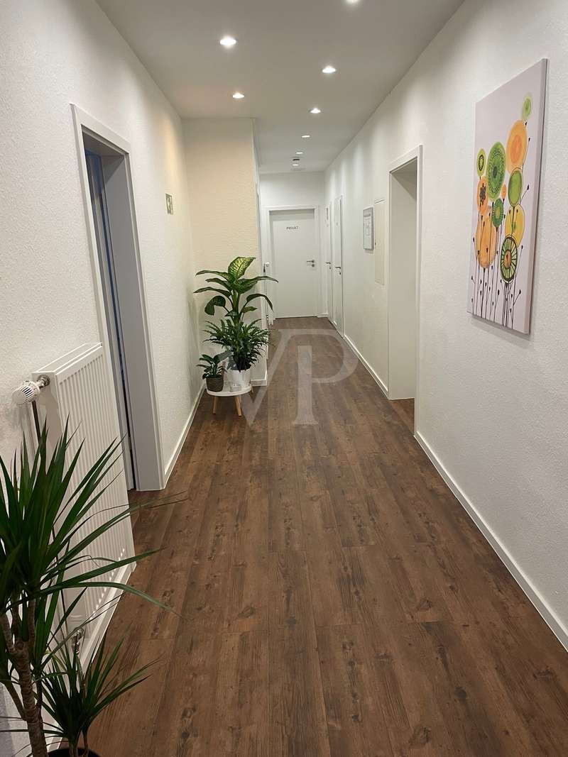 This residential and commercial property consists of two building parts of different construction years. The older and larger part is a listed building, built in 1895. In 1986 a part of the building was added to the listed building as a new building. Only the attic is used for residential purposes. The apartment here extends over both parts of the building. The development of the attic took place in 1990. The apartment (mixed use as office and apartment) is accessible via an external steel staircase from the parking lot. Likewise, the access to the one practice is also from the parking lot. The property is very centrally located and is currently used by two medical practices ,an association and two private tenants. Of these, one practice with 2 units ( 75 m² and 150 m²), 1 practice with 235 m², 1 commercial space with 220 m² and 2 apartments with 180 and 75 m². TheStaircase was completely re-tiled in 2017 and a chair lift was installed. The installation of a passenger elevator would be possible, as there is already a corresponding elevator shaft in one of the two stairwells. The equipment of the units is very high quality. Ongoing investments have been made on the part of the owner and tenants (list attached), such as: - in 2017 the installation of new windows in the offices of the dental practice ect.. - in 2018 new Velux windows in the DG apartment,2 new windows in the dental office, new doorbell system for two units, partially new exterior lighting and landscaping ect. - in 2019 parking lot lighting, electrical work garden, renewal of steps in the entrance area, 3 circulating pumps, new entrance door practice ect. - in 2020 new sanitary installations, complete new electrical installation and interior design of the commercial unit, new kitchen, roof and painting works , flat roof and a gutter renewed ect. - in 2021 fire protection measures, new bathroom facilities, new lamps , new apartment door in rental apartment ect. All works and investments can be documented and amount to about 200.000,- € in the last 4 years. For the whole property there are two heating systems (gas). The stated purchase price is negotiable. Possibly, a partial plot can be calculated out, so that the purchase price is reduced.