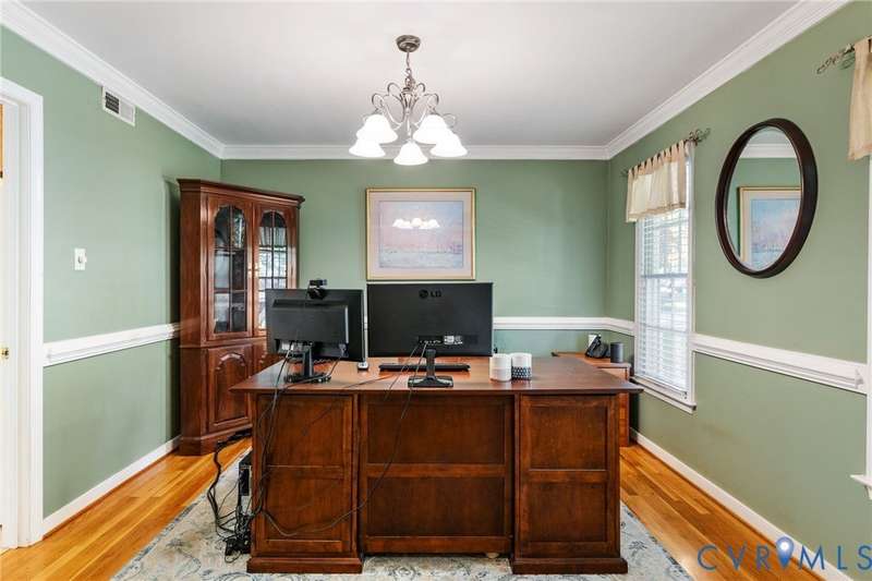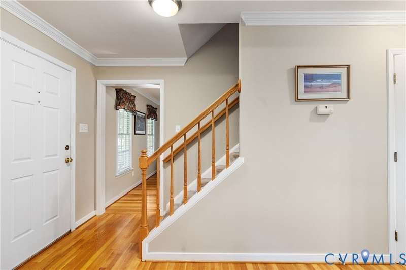 Don't miss this great opportunity to live in one of the most sought after neighborhoods in Hanover County located in the Atlee High School District!! This home offers over 2000 sq ft, 4 bedrooms, 2.5 baths, 2 car garage, and beautiful 16X12 rear screened porch. The exterior offers hardiplank siding, double width paved driveway, whole yard irrigation system, country front porch, 30-year dimensional shingled roof, central air/gas heating HVAC system, huge rear deck, and that beautiful 16X12 screened porch. The interior is pristine and offers a very inviting floor plan. The large family room has hardwood flooring and gas fireplace. The eat in kitchen offers plenty of counter space, pantry, bright breakfast nook, and gas cooking. The dining room has hardwood flooring, chair and crown molding, and could also be a nice sized office. The upstairs is very spacious. The large primary suite offers a large walk in closet, ceiling fan, and en suite bath with tile flooring and tub/shower combo. Bedrooms 2 and 3 offer nice sized closets and ceiling fans. The fourth bedroom is very large with large closet, ceiling fans, and could also be used for a nice sized game room. Lastly enjoy morning coffee or the late afternoon game on the beautiful screened porch which is an extension from the main level of the home. Kings Charter offers lots of amenities including, 2 pool areas, tennis courts, multiple playgrounds, walking sidewalks throughout the neighborhood, basketball courts, pickle ball courts, a large clubhouse, and a large lake perfect for some afternoon fishing. Lastly Kings Charter is very close to nice dining, interstates, shopping, American Family Fitness, the airport, and Downtown RVA. Don't let this one pass you by!!!!