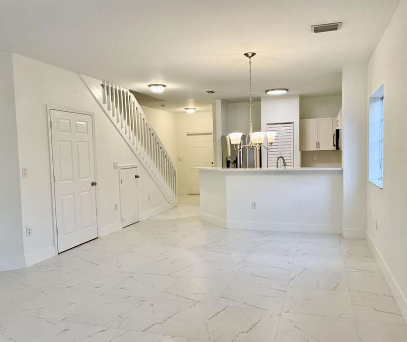 Great 3/2.5/1 corner unit in central location near beaches, parks, I95, shopping, etc. Home has been extensively renovated with beautiful kitchen counter tops, cabinet doors, all new appliances, new tile, carpet, renovated bathrooms and fresh paint throughout. All bedrooms have walk in closets, with a Jack and Jill bath between guest bedrooms. Home has a double driveway and is located very near the community pool and playground. All roofs in the community are being replaced. As is with right to inspect. All sizes and fees approx.