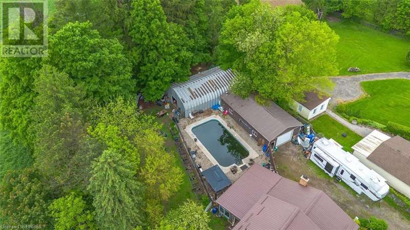 Welcome to 279 Cockshutt Road in Brantford — a charming and spacious 2-storey home nestled on a beautifully landscaped 0.92-acre lot in a tranquil rural setting. This property offers approximately 3,507 sq ft of living space, including 3 bedrooms and 2 full bathrooms, making it perfect for families or multi-generational living. The main floor features blonde hardwood and tile flooring, a bright and inviting layout with a formal living room, a cozy family room with wood burning fireplace, a separate dining area, and a well-appointed kitchen filled with natural light and ample cabinetry. Upstairs, you'll find 3 bedrooms and 2 full bathrooms, while the partially finished basement offers flexible space for a rec room, office, or additional guest quarters with a walk-up back entrance. Outside, enjoy the peaceful surroundings, mature trees, and a large yard, covered porch with bar and hot tub, and oversized inground pool ideal for entertaining or relaxing. The home also includes a heated detached 6- car garage, additional large insulated/ heated quonset, and parking for 10+ vehicles. Recent updates include roof shingles (2016) and a natural gas forced-air heating and central A/C system. With a private well and septic system, this home offers self-sufficient living just minutes from Brantford’s conveniences, schools, and highways. Zoned residential and located near the corner of Cockshutt Road and Campbell Farm Road, this property is a rare opportunity to enjoy country living with modern comforts with flexible possessions available. (id:7434)