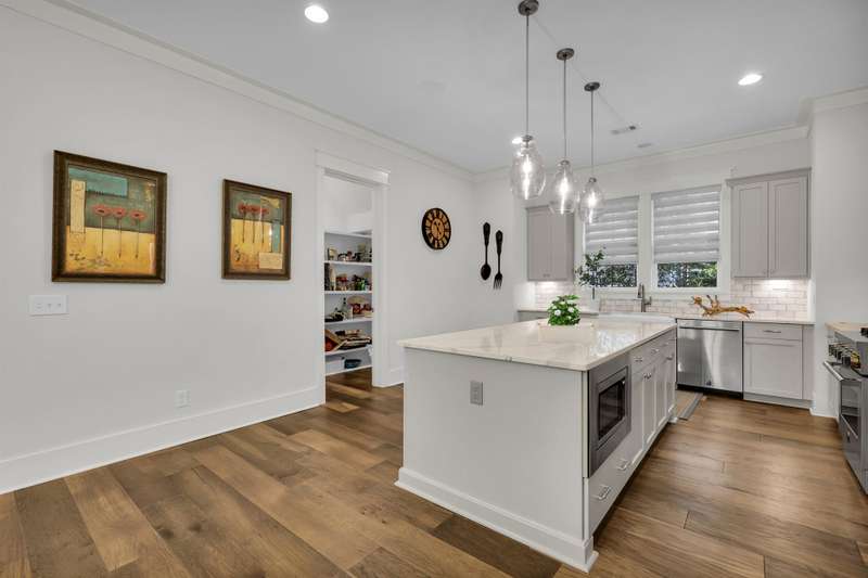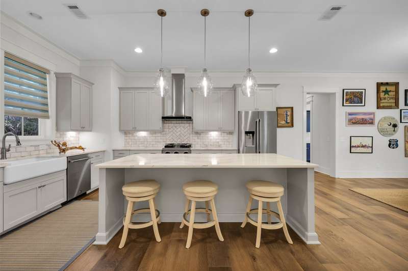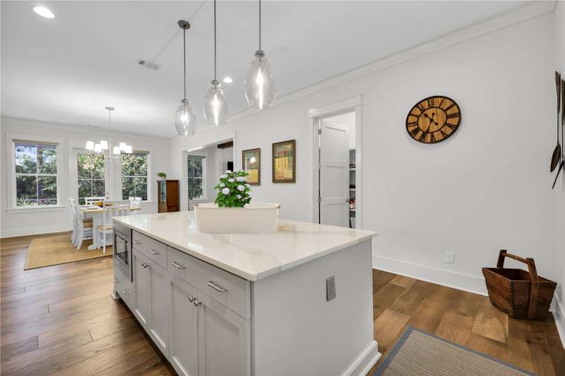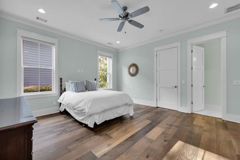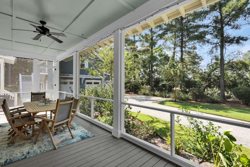 Make the model home your new home! Welcome to 2 Oldfield Village Road - Your New Lowcountry Home. Designed by Pearce Scott, this distinctive property was built by Frontlight Building Co offers over 4,100 sq ft of living space plus 700+ sq ft of unfinished area ready for you to create a new special space. Set back from the road, the home greets you with a wraparound porch extending from the west to the south side, transitioning into a screened-in area with a spacious outdoor dining space ideal for embracing the Lowcountry lifestyle. The first floor features a 350 sq ft living room anchored by a tabby-covered gas fireplace. At the heart of the home is a 520 sq ft kitchen and dining area that stretches from the north wall to the screened porch. Ten-foot ceilings and expansive windows flood the space with natural light, creating a warm, inviting atmosphere for gatherings and daily living. Located at the rear for privacy, the primary bedroom includes dual walk-in closets and a luxurious bath with dual vanities, a soaking tub, and a walk-in shower. A well-appointed laundry room with extra cabinetry and a work sink sits conveniently between the kitchen and primary suite. Upstairs, three additional bedrooms offer flexible living. The second bedroom, nearly 240 sq ft, could serve as a second primary suite with its en suite bath. Bedrooms three and four share a third full bath, and bedroom four connects to the unfinished space over 700 sq ft of potential for a golf simulator, fitness room, office, or craft studio. The adjacent 2.5-car garage includes a full guest suite with kitchenette, bath, and generous sleeping and sitting areas perfect for visitors or multi-generational living. Looking for outdoor living & privacy? Set on a private 0.53-acre lot, the property features raised planting beds, a firepit, and ample space for outdoor games. The backyard borders Oldfield Club Association land, ensuring lasting privacy and protected views.