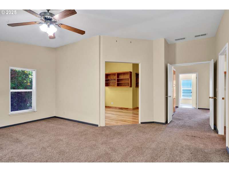 Spacious 3-Bedroom Home with 3-Car Garage on a Corner Lot Near the Coast!Just minutes from the beach, this well-cared-for 2,460 SqFt home offers 3 bedrooms, 2.5 baths, and a spacious 3-car garage. Situated on a desirable corner lot and built in 2000, the home welcomes you with a charming wraparound covered porch and French doors that lead into a bright living room featuring recessed ceilings and a double-sided fireplace. The layout includes both formal and casual dining spaces—one off the living room and the other within the large kitchen, which is equipped with granite countertops, custom cabinetry, a central island, and access to the porch for seamless indoor-outdoor living. The primary suite offers a carpeted bedroom, walk-in closet, and an attached office with wood floors and built-ins. The en suite bathroom includes dual sinks, a soaking tub, and a step-in shower. Two additional bedrooms provide flexible space—one with wood floors, perfect for hobbies or a studio. A partially fenced section of the yard features low-maintenance artificial turf and a cozy firepit area—ideal for relaxing outdoors. At the back of the property, the oversized detached garage provides ample room for a workshop, tools, and storage.