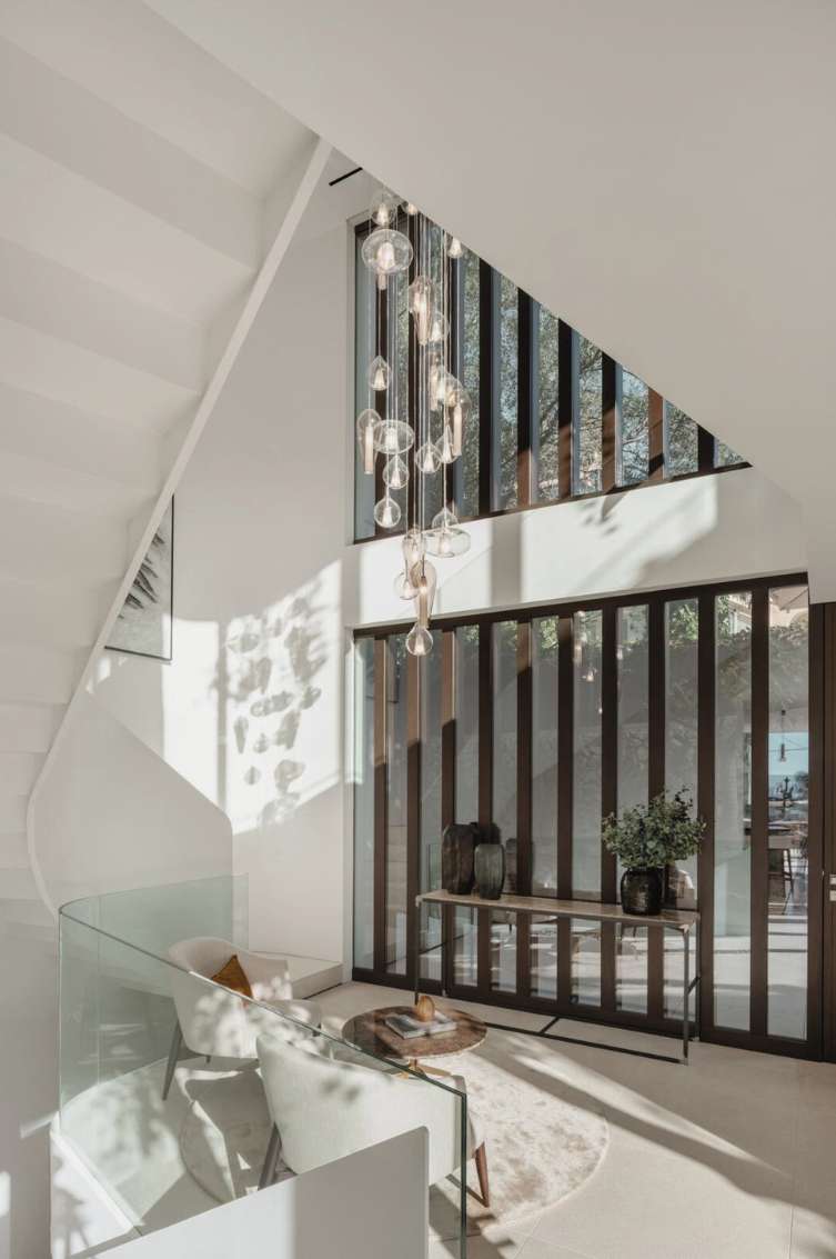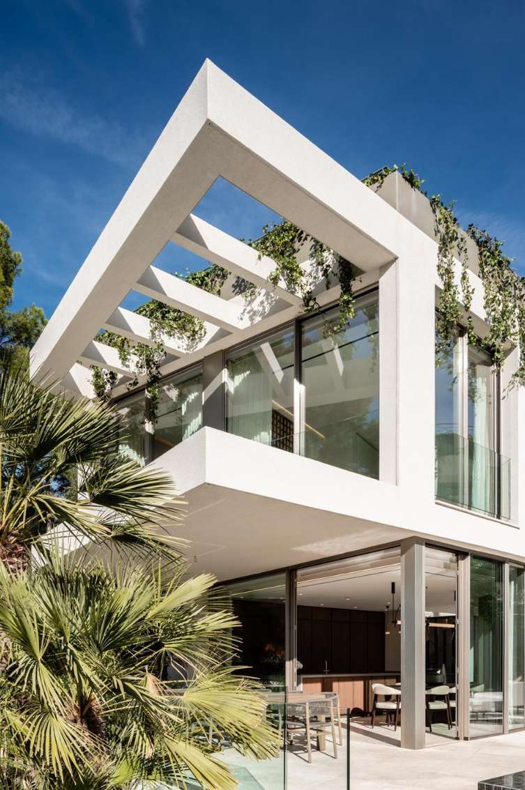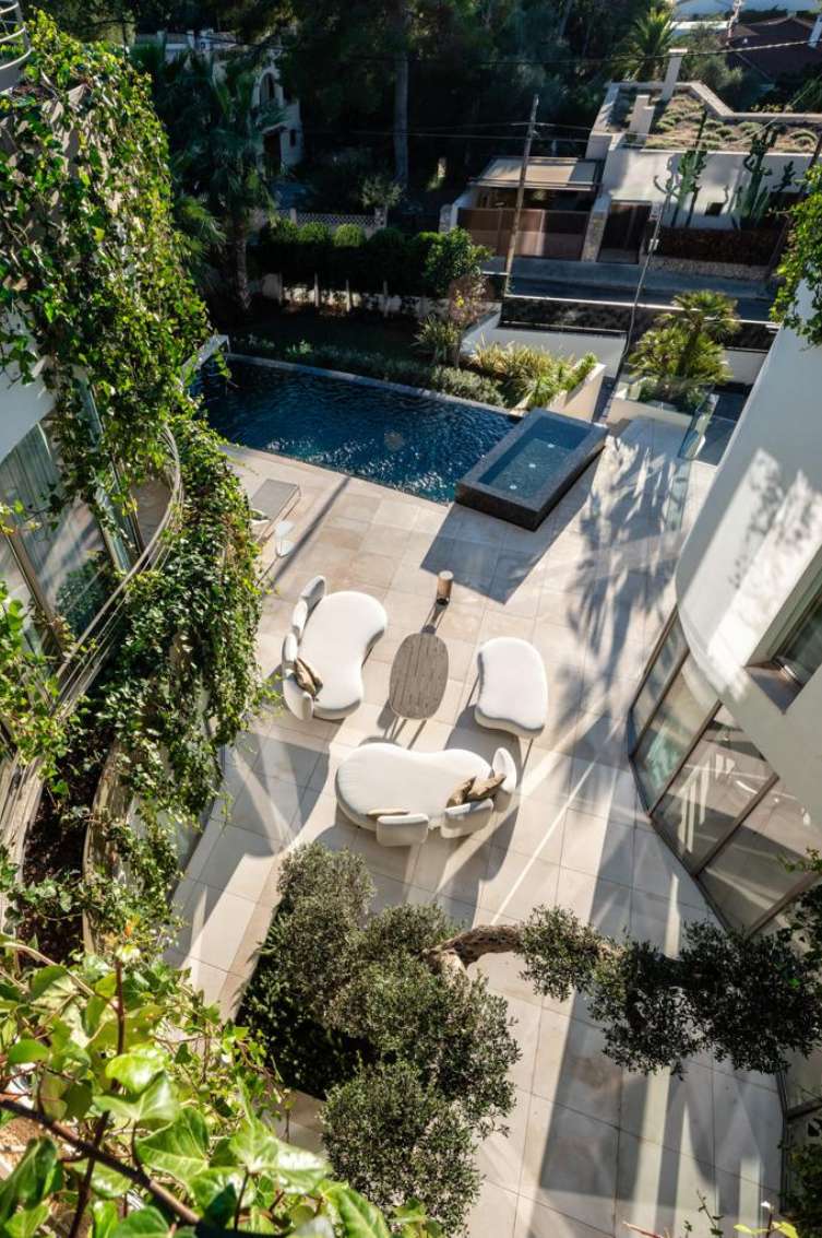 This property boasts a generous plot of approximately 750 sqm and a total living area of around 491 sqm spread across three floors. The villa features four bedrooms, each with an en-suite bathroom, a spacious living and dining room, a fully equipped kitchen, and a utility room. The modern and elegant design creates a harmonious living experience with an open-plan layout and simple sophistication. Carefully selected furnishings and amenities ensure maximum comfort, including underfloor heating, air conditioning, a fireplace, electric blinds, a wine cellar, an electric car charging station, a music system, solar panels, an alarm system, a fitness room, and more. The highlight is the rooftop terrace with a Jacuzzi and partial sea views, providing the perfect setting to unwind with a glass of wine at the end of the day. The outdoor area is equally impressive, with a refreshing pool and well-maintained gardens that offer ultimate relaxation. This villa embodies the perfect blend of luxur