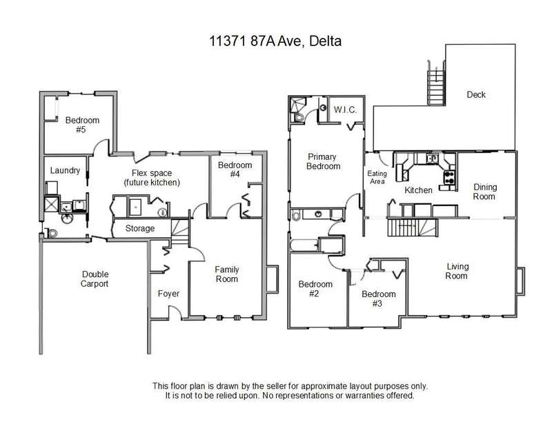 The one you've been waiting for! LARGE, 5 bed/3 FULL bath home (2460 sqft) is owner-occupied and well-maintained. Primary bedrm has WIC, 3-pce ensuite, & room for the king-sized bed. Kitchen & dining rooms open onto sundeck with access to private fenced yard. SUITE potential! Bright lower level has sep entrance, family room, 2 beds, bathroom, laundry room, & flex room (plumbing roughed-in for kitchen or workshop). Outside enjoy low-maintenance yard & covered hot tub for year-round relaxation. Extra storage under the deck. Updates include double glazed windows, furnace, & new attic insulation. Quiet no-through road with easy access to Nordel way, schools, shopping, & North Delta Rec Centre. Incredible value - Hurry on this one! (id:58403)