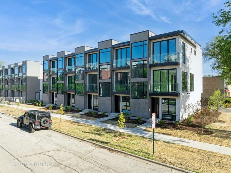 Explore the 3D Tour! Brand new construction. This is upscale, modern living at its finest! Discover the elegance of this Hollywood-style luxury townhome, ideally located near parks, Metra, restaurants, shopping, entertainment, fitness centers, Starbucks, Amazon Fresh, and more. It's the perfect blend of urban convenience and suburban comfort. Designed with a striking combination of cement, glass, and steel, this home offers an innovative and contemporary aesthetic for those who appreciate exceptional design and quality. Floor-to-ceiling windows and full-wall glass panels flood the space with natural light, enhancing the home's open and airy feel. This thoughtfully designed 3-story townhome includes: *Three bedrooms and three full bathrooms across a spacious and versatile floor plan *Finished first level with direct access from the attached 2-car garage-ideal for a home office, media room, gym or guest space *Main level with open-concept living, dining, and kitchen areas, two balconies, and an additional bedroom *Third level with two bedrooms, laundry unit and a bath. Private master suite, complete with a luxurious en-suite bathroom. *The gourmet kitchen features 42 upper cabinets, stainless steel appliances, Dekton countertops-perfect for entertaining. This is your opportunity to own a 2025-built home with exceptional craftsmanship, high-end finishes, and outstanding architectural detail. No detail has been overlooked-move in and live worry-free. Indulge in the lifestyle you deserve.