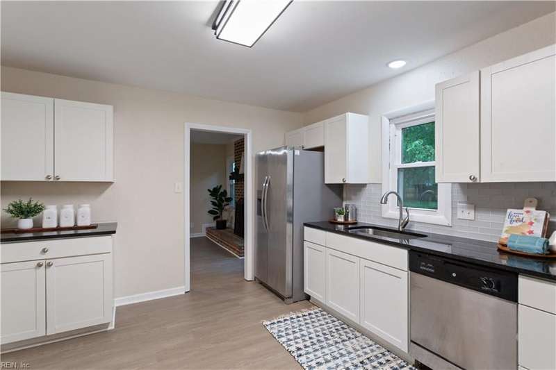 Welcome to this fully renovated 4-bedroom, 2.5-bath home in the desirable Hatton Point neighborhood! Updates include a modern kitchen, refreshed baths, new flooring, lighting, windows, gutters, and water heater. The move-in ready layout features an attached 1-car garage plus additional driveway parking. Outside, a large 0.34-acre fenced yard offers plenty of space for entertaining, pets, or play. Hatton Point is a quiet, established community near the Elizabeth River (no flood insurance required!) with convenient access to bases, shipyards, and shopping.