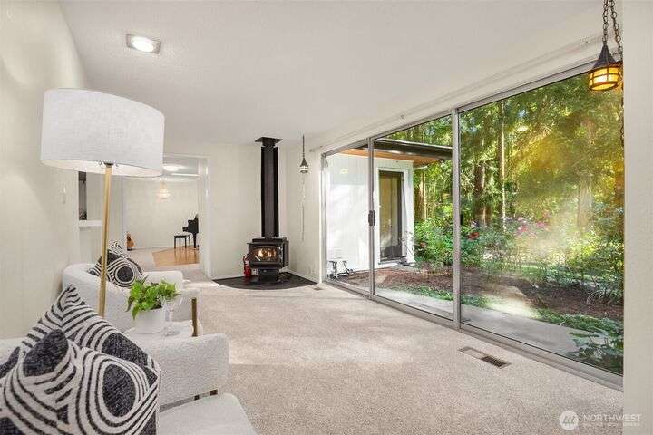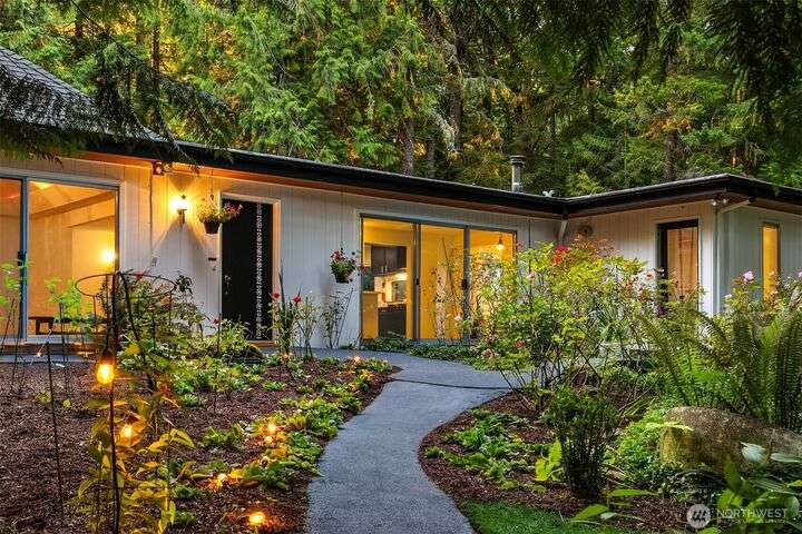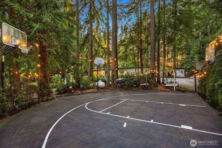 A rare sanctuary in Poulsbo-three parcels joined for ~3.07 acres with tennis court less than a mile from Brownsville Marina. This single-level 4-bed 2-bath residence delivers effortless living with no steps, soaring vaulted ceiling, & walls of glass that reveal the serene wooded setting. Outdoors, indulge in a private tennis court, basketball, bocce, & even pickleball potential. Three storage sheds add convenience, while fruit trees, mature landscaping, & open spaces set the stage for relaxation. Bring your vision to the included 1.83 acre buildable lot. Gather at the fire pit or under the canopy of trees in multiple inviting areas perfect for entertaining, celebrating, or simply savoring the dream of Pacific Northwest living each day.