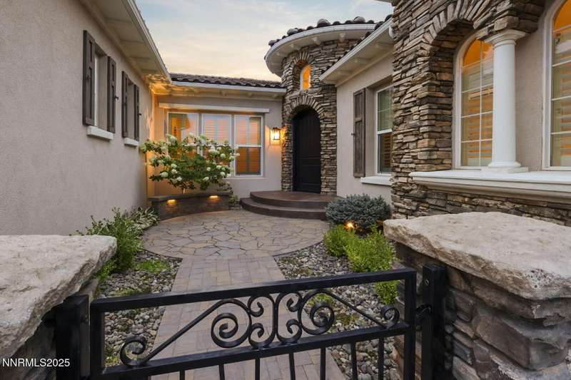Sophisticated Single Story Living in ArrowCreekTucked away at the end of a private cul-de-sac in the coveted Granite Pointe enclave, this refined residence embodies the perfect balance of comfort, style, and convenience. Positioned adjacent to open common space and moments from the gated entrance, the home is also a short walk to the Residents' Center, Clubhouse amenities, and the world-class golf courses of ArrowCreek.Step inside to discover a bright and impeccably maintained interior, enhanced by rich walnut hardwood floors and a thoughtfully designed open floor plan. The spacious kitchen and great room create seamless flow for everyday living, while the formal dining and living rooms offer versatility perfect for elegant entertaining, quiet work, or relaxed gatherings.The inviting backyard serves as a private retreat, complete with a graceful lattice pergola, cozy gas fire feature, and generous areas for dining, entertaining, or unwinding in serene surroundings. The primary suite is a sanctuary of its own, offering dual walk-in closets and direct access to the patio for a seamless indoor-outdoor experience.A pedestrian path just beyond the property leads directly to the Residents' Center, where you will find a resort-style pool complex, tennis and pickleball courts, basketball, fitness facilities, playgrounds, barbecue pavilions, open lawn space, and miles of scenic walking trails.ArrowCreek residents also enjoy access to The Club at ArrowCreek, which has undergone a remarkable seventy-million-dollar expansion. Members experience thirty-six holes of championship golf, elevated dining, state-of-the-art fitness and aquatic amenities, bocce ball, extensive practice facilities, and a vibrant social calendar. (Membership not included in the sale; please contact ArrowCreek's Membership Director for details.)This premier gated golf course community offers full-time, manned security for peace of mind, along with an unparalleled location just twenty minutes to Reno-Tahoe International Airport, twenty-five minutes to Mt. Rose Ski Resort, and forty minutes to the pristine shores of Lake Tahoe.