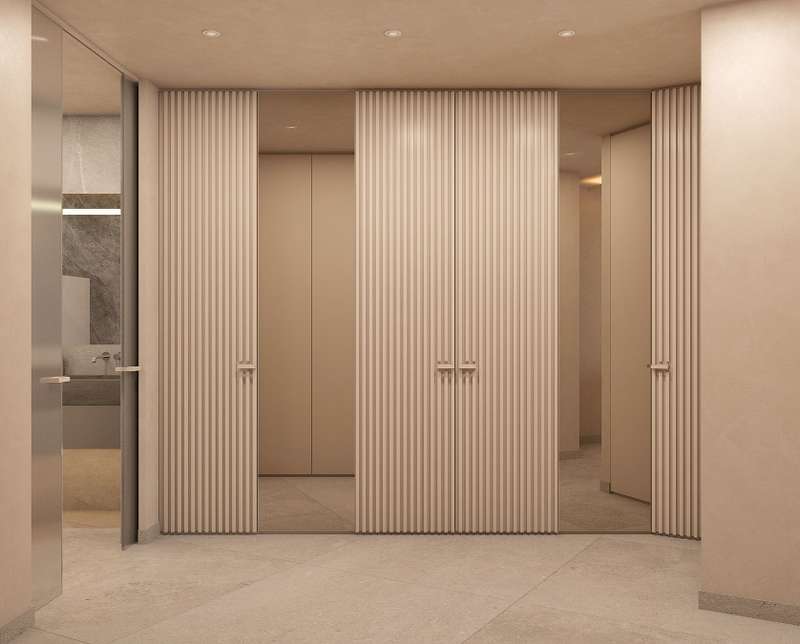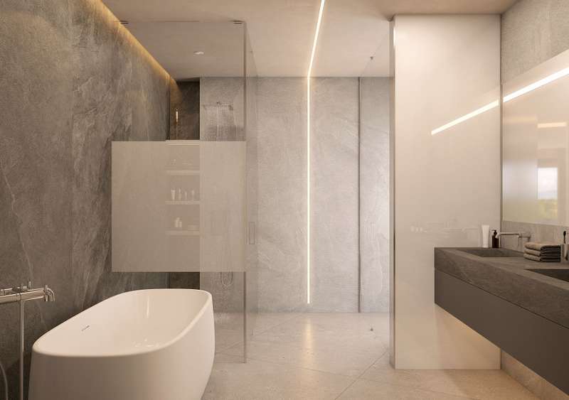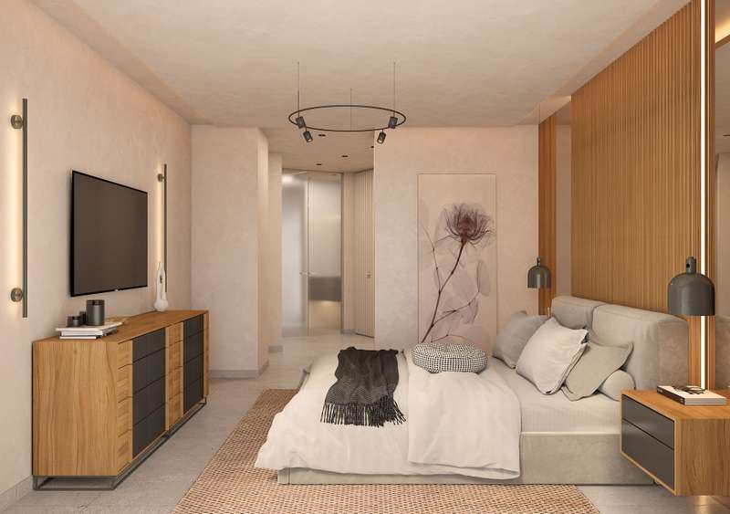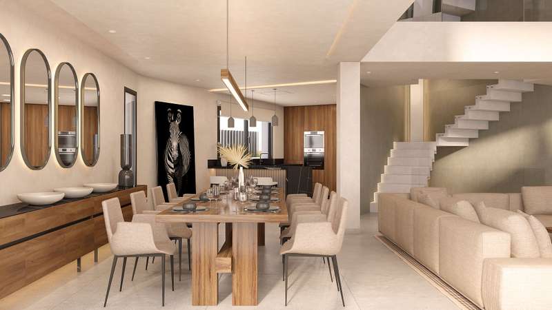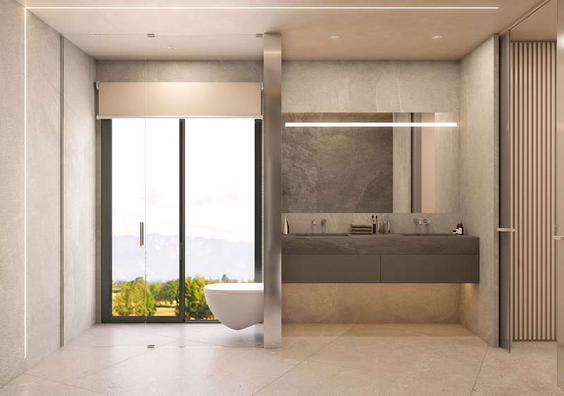 With a predominant focus on the use of concrete aesthetics, we have curated a design that exudes timelessness and, to some extent, intellectual depth. We harmonize purist design elements with an exceptionally functional layout featuring four bedrooms, achieving a perfect equilibrium between form and function. This luxurious villa is thoughtfully arranged across a ground floor, first floor, and a basement area that houses a multi-car garage, a well-equipped gym, an entertainment zone, pool facilities, and a practical utility room. The expansive, panoramic windows gracefully define the living spaces and corridors, affording captivating views of the enchanting tropical-Mediterranean garden enveloping the residence. The open-concept living and dining area seamlessly integrates with a chic lifestyle kitchen and is complemented by spacious covered terraces that extend to the inviting pool area. The ground floor also hosts a guest suite, while the upper floor boasts a private master suite an