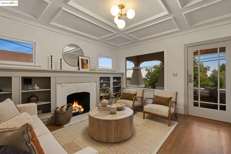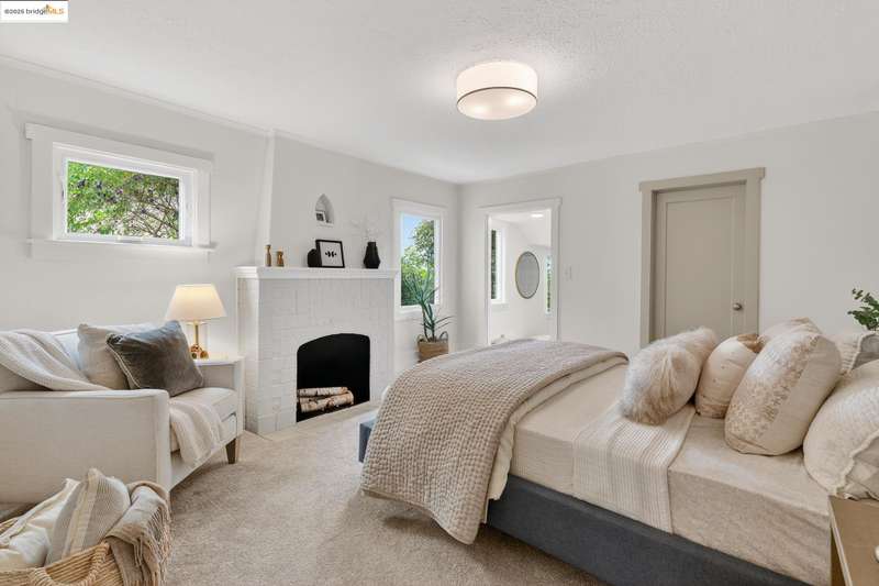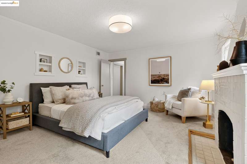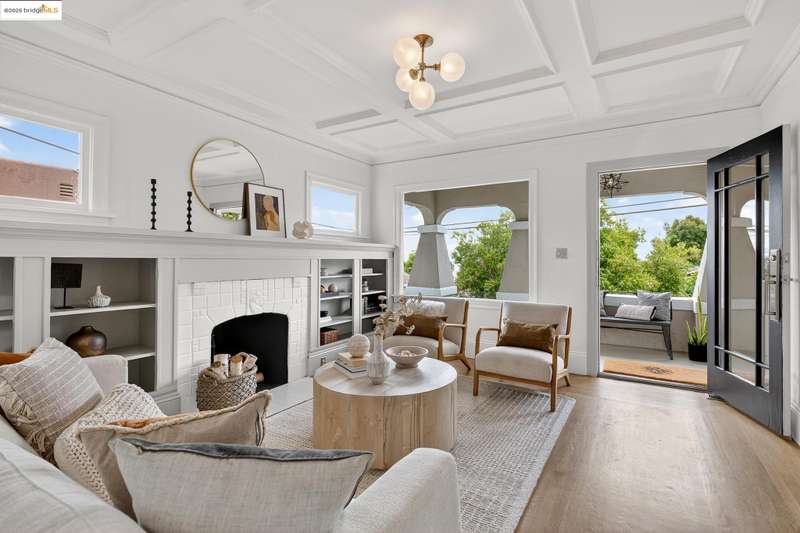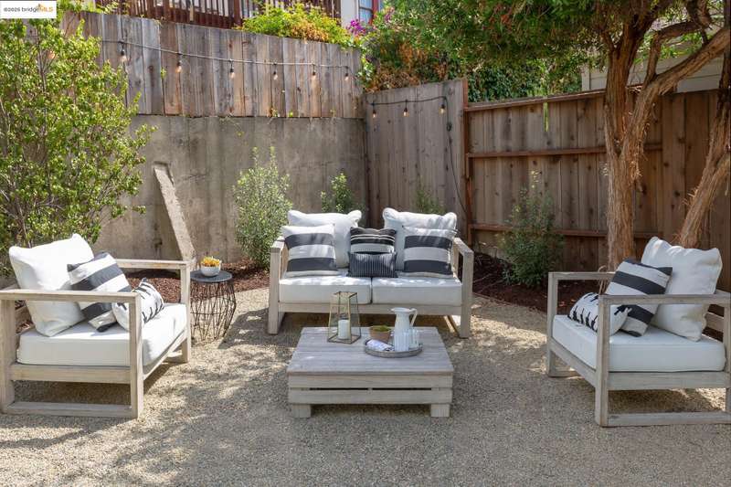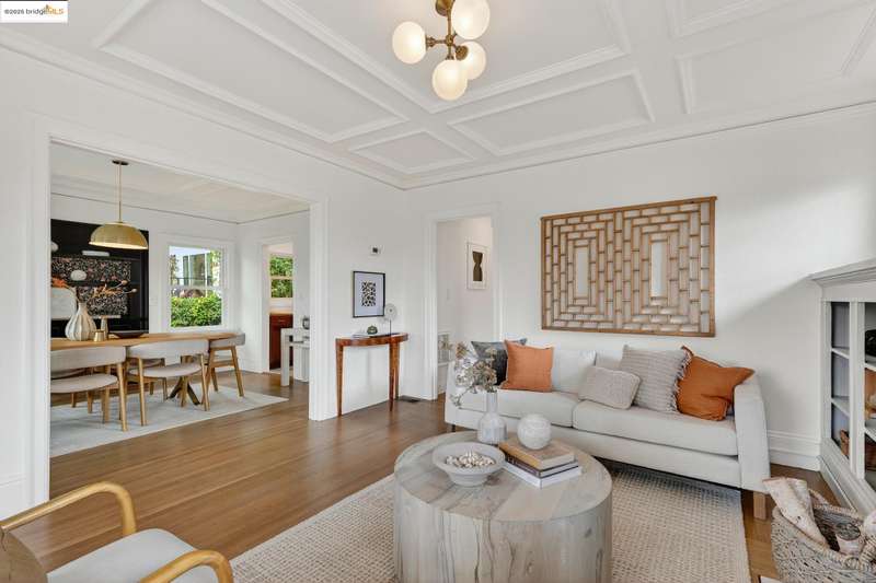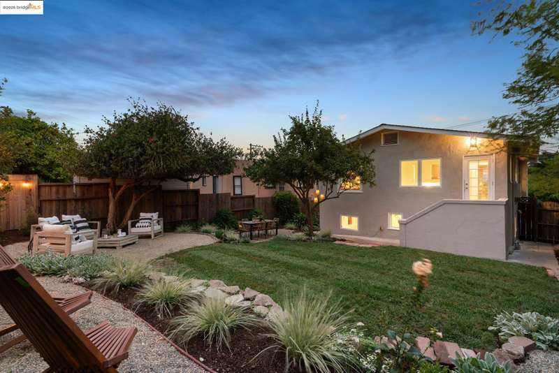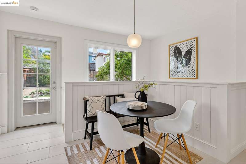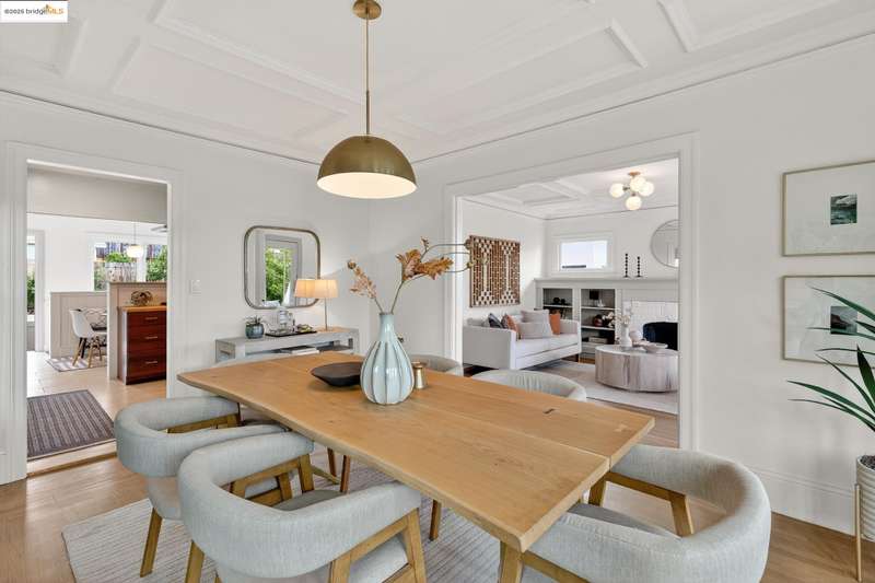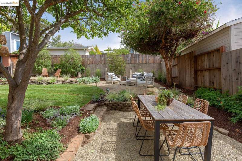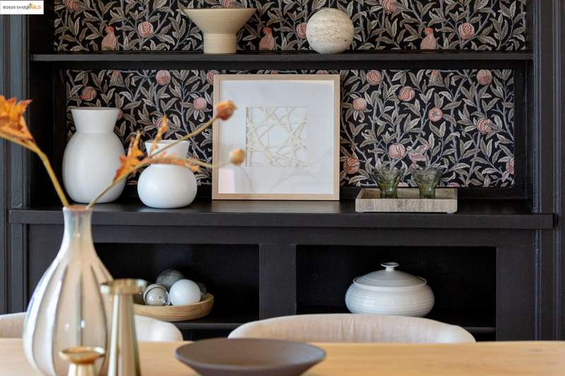 Lovingly maintained by the same owners for 22 years, this thoughtfully updated 4-bedroom, 2-bath home blends vintage character with modern comfort. The main level features a dining room with a beautiful original built-in and five-window bay, a living room with wall-to-wall built-ins flanking the fireplace, and inlay-detailed hardwood floors. The kitchen and bonus dining area open to a lush, flat backyard with mature fruit trees and plenty of space to dine, lounge, and play. A sunny bedroom and vintage full bath with hex tile complete this level. Downstairs offers three large bedrooms, including a versatile suite with original embossed-tile fireplace, laundry room, exterior entry, and interior garage access—perfect for a home office, guest quarters, or rental potential. Two bedrooms share a whimsical tunnel closet; one features a custom princess loft. A full bath remodeled in 2022 adds modern style while honoring the home’s vintage charm. With a newly paved driveway, one-car garage, and central location just blocks from Laurel District favorites—World Ground Coffee, Sequoia Diner, Degrees Plato Taproom, Farmer Joe’s, and more—you’ll love the easy access to both SF and the South Bay, plus weekend escapes to Redwood Regional Park for hiking, biking, and riding.