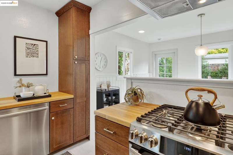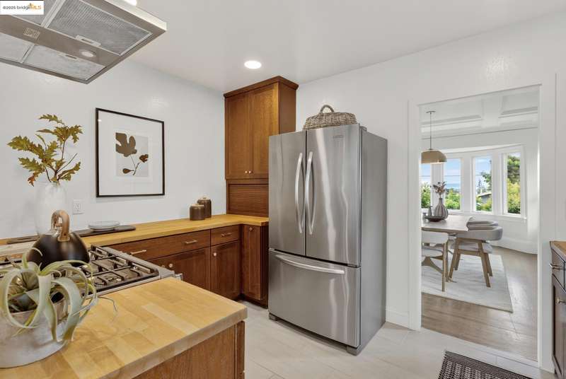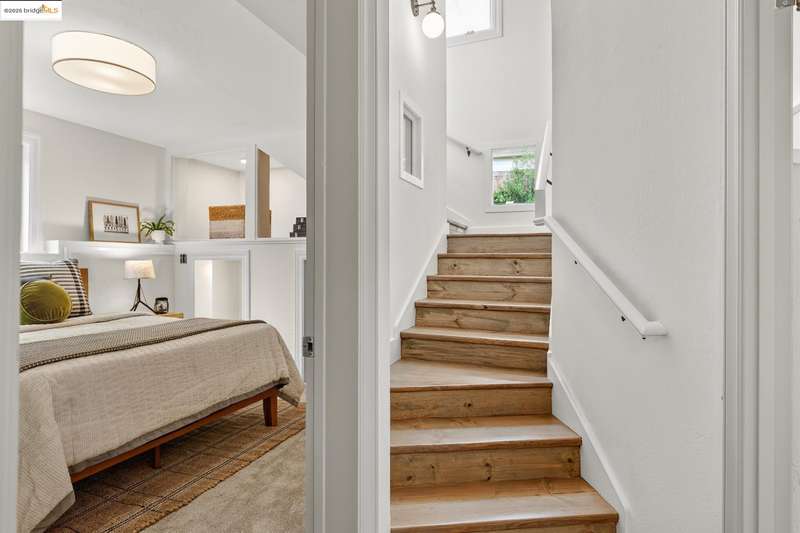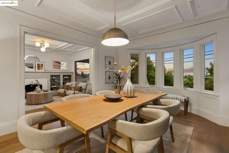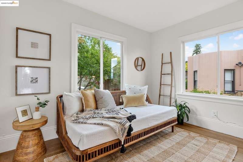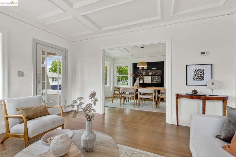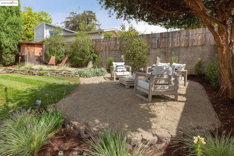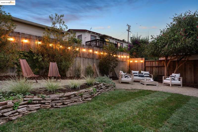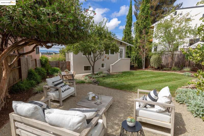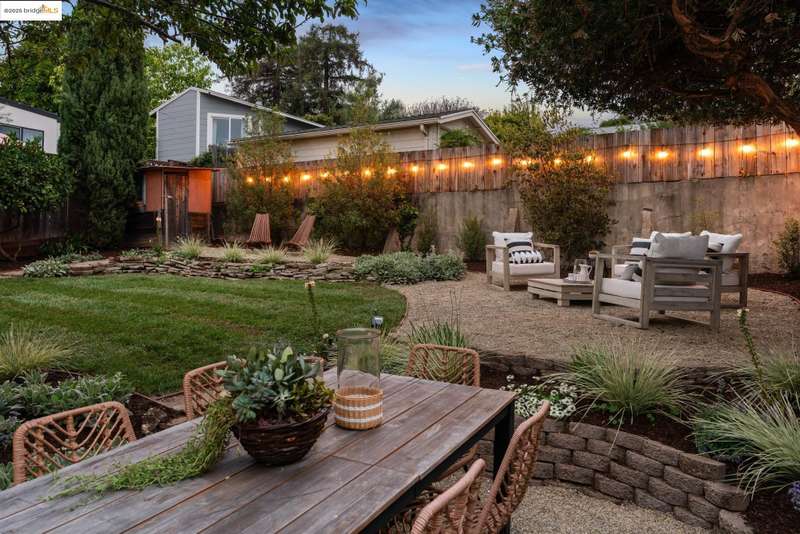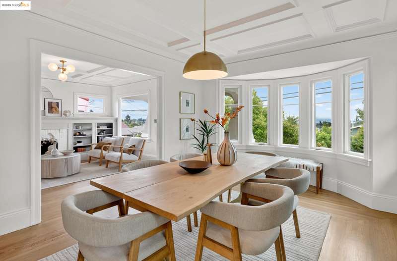 Lovingly maintained by the same owners for 22 years, this thoughtfully updated 4-bedroom, 2-bath home blends vintage character with modern comfort. The main level features a dining room with a beautiful original built-in and five-window bay, a living room with wall-to-wall built-ins flanking the fireplace, and inlay-detailed hardwood floors. The kitchen and bonus dining area open to a lush, flat backyard with mature fruit trees and plenty of space to dine, lounge, and play. A sunny bedroom and vintage full bath with hex tile complete this level. Downstairs offers three large bedrooms, including a versatile suite with original embossed-tile fireplace, laundry room, exterior entry, and interior garage access—perfect for a home office, guest quarters, or rental potential. Two bedrooms share a whimsical tunnel closet; one features a custom princess loft. A full bath remodeled in 2022 adds modern style while honoring the home’s vintage charm. With a newly paved driveway, one-car garage, and central location just blocks from Laurel District favorites—World Ground Coffee, Sequoia Diner, Degrees Plato Taproom, Farmer Joe’s, and more—you’ll love the easy access to both SF and the South Bay, plus weekend escapes to Redwood Regional Park for hiking, biking, and riding.