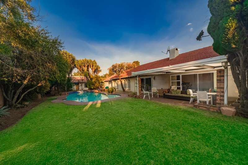Endless Charm on a Prime Corner Stand | Family Living, Expansive Garden, and Bonus Cottage! Welcome to a timeless residence that radiates warmth, character, and potential. A rare gem set on a sprawling 1488sqm corner stand in one of the area?ÇÖs most desirable and established neighbourhoods. With 280sqm of internal space, this single-storey haven offers the perfect blend of spacious living and family functionality. The red-tiled roof and arched cottage-style windows create a welcoming fa?ºade, framed by a lush, established garden. Step inside and discover a home designed for comfort and connection. The generous living areas feature beautiful wood-panelled ceilings and large windows that allow natural light to dance across the space. An open-plan lounge and dining room flow into a more private second lounge, ideal as a TV room, entertainment area, or home office. The kitchen is classically appointed, with white cabinetry, tiled floors, ample storage, and space for all your appliances. The three spacious bedrooms are well-positioned, with the main suite offering a sense of retreat and a peaceful garden outlook. Both bathrooms are neat and practical. Step outside and be wowed by the entertainment potential of this home. A sparkling pool takes centre stage, surrounded by manicured lawns, mature trees, and a dedicated braai area with built-in seating ?Çö tailor-made for weekend gatherings and laid-back summer afternoons. And the bonus? A fully self-contained cottage, ideal for extended family, rental income, or work-from-home professionals. With its own private entrance, this addition adds both flexibility and value. A double garage, double carport, and an abundance of driveway space provide ample parking for residents and guests. All set within secure, walled grounds on a prime corner stand, offering privacy, presence, and easy access. Come home to space, charm, and opportunity. Call today to realise all its potential.