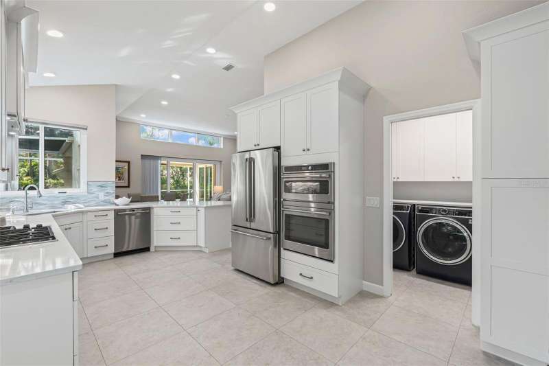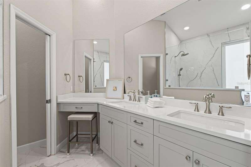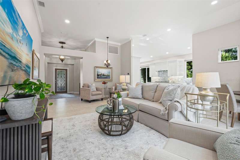 Completely renovated in 2023 to the utmost standards, this luxury pool home is better than today’s new builds. From top to bottom, you’ll notice the difference. On the exterior, enjoy peace of mind with the new roof, impact resistant windows and doors, impact resistant garage door, fresh paint, and whole house generator. New pavers, landscaping and outdoor lighting set the tropical ambiance. The sparkling pool, with a new heater and pool tiles, and the outdoor kitchen invite you to relax and entertain in true Florida style. On the inside you’ll find new tile floors and baseboards, Hunter Douglas shades, new outlets, switches, lighting fixtures, exhaust fans, ceiling fans, and a new HVAC system. No detail has been overlooked. This pristine home boasts a chef’s kitchen with Cambria quartz countertops, soft-close cabinetry, and GE Cafe and Wolf appliances. Everything in the kitchen and in both baths has been fully renovated with the highest quality materials and finishes. The open floor plan and soaring ceilings in this spacious home maximize the abundant natural light and provide multiple views of the inviting pool and lush landscaping. Located on a quiet cul-de-sac in Hampton Green, a subdivision within the coveted University Park Country Club, HOA dues cover the landscaping as well as high speed fiber-optic cable and internet in the homes. University Park Country Club is a gated master planned community with 27 holes of four-star rated golf, a full-service restaurant and bar, state of the art clubhouse and fitness center, pickleball and tennis courts.