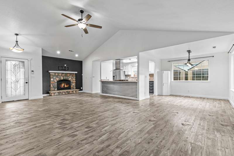 Move-in ready, low maintenance, and perfect for entertaining! This light and bright home features an open floor plan with vaulted ceilings, luxury vinyl plank flooring, and a cozy gas fireplace. Granite counters, updated fixtures, lighting, and a true pantry, with laundry conveniently located off the garage. The backyard is made for fun with new turf, covered patio, gazebo, and flat-screen TV with custom hard cover. Enjoy raised garden beds, fresh veggies, new fencing, and easy-care landscaping front and back. Relax in the private sauna (220V installed) and appreciate added touches like a central vac system and stylish new vanities. TRUE GATED RV parking, 2 storage sheds, plus close proximity to walking paths, parks, schools, and shopping make this home a standout!