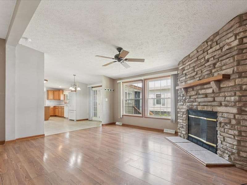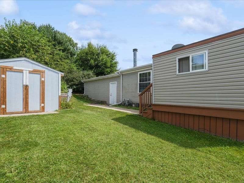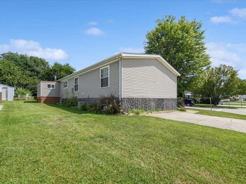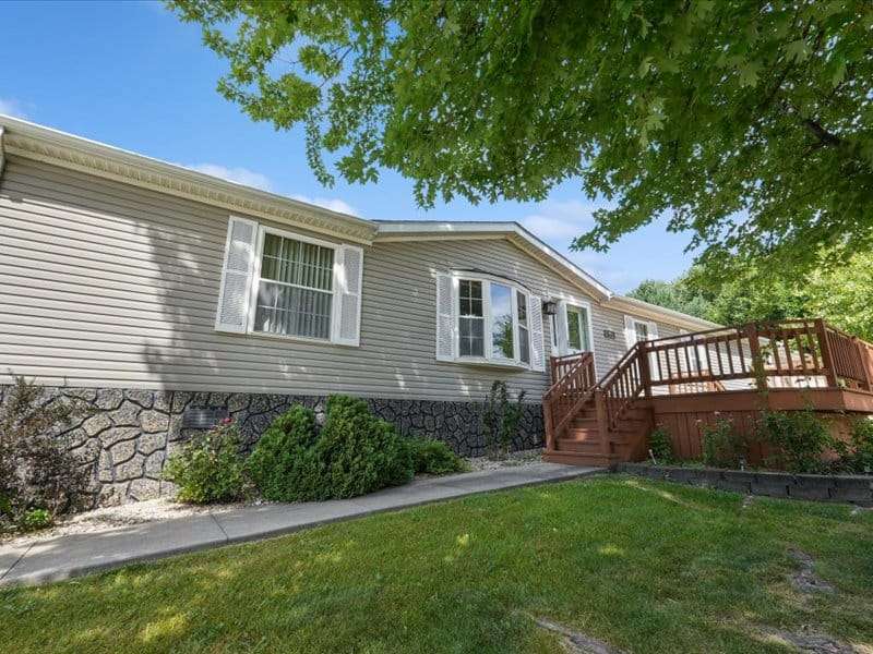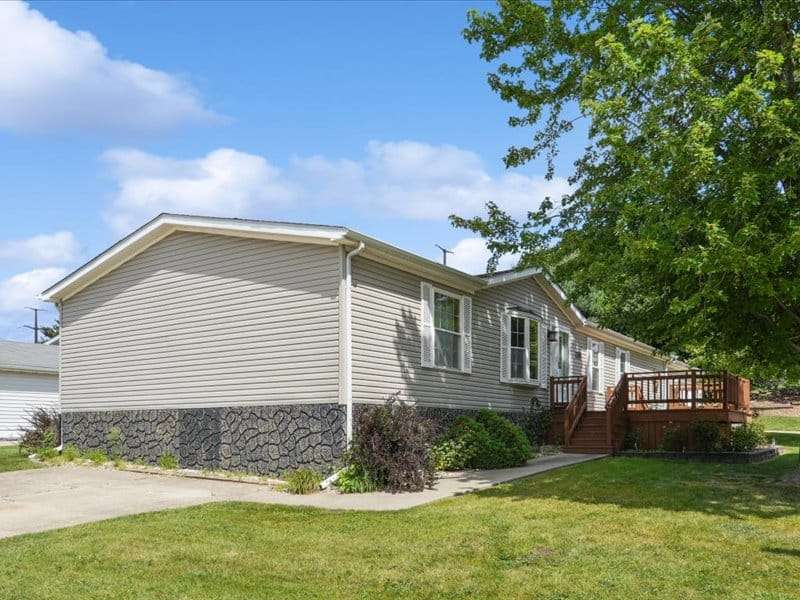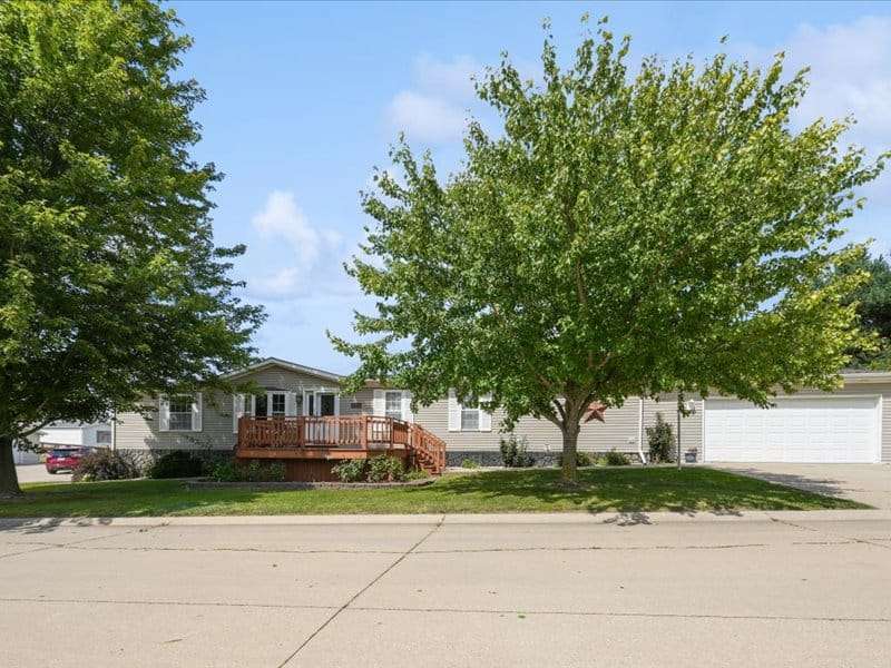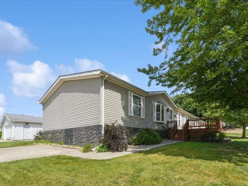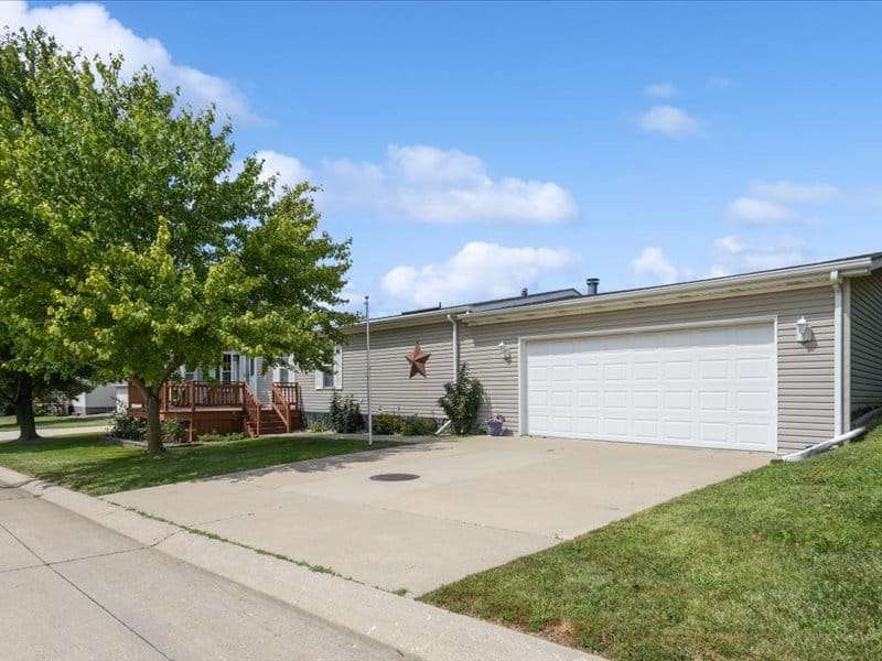 This spacious move-in ready double-wide home is in Country Club Crossing. Its been well-maintained & features an open layout with drywall (no paneling), a fireplace, kitchen island, pantry, 3-season porch, attached garage, & more! The home is on a corner lot with shade trees to cover while hanging out on the large front porch. The park has many amenities such as a club house, 2 playgrounds & a picnic area.
