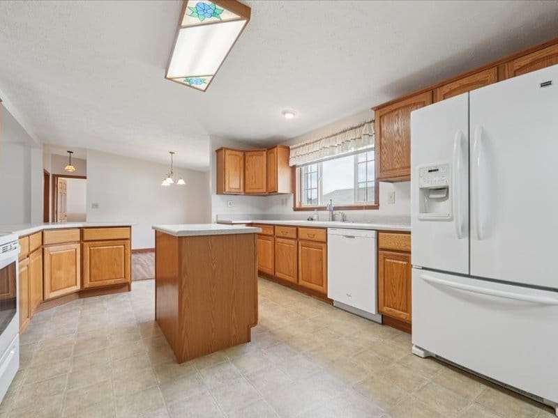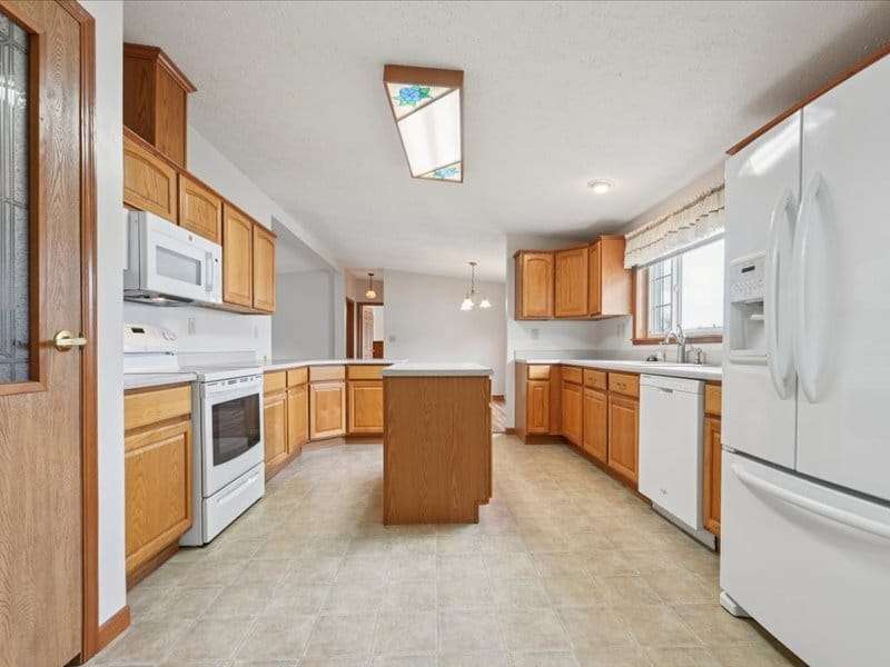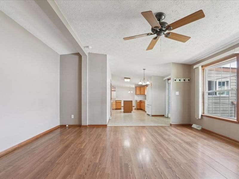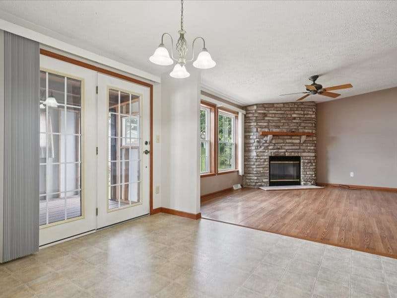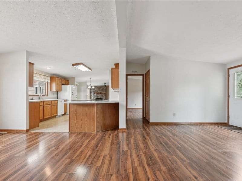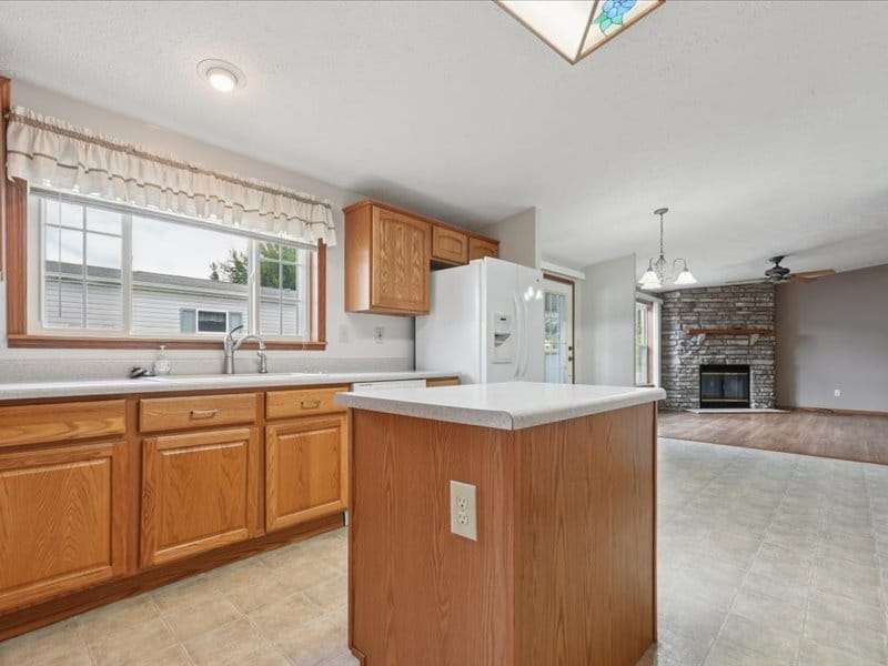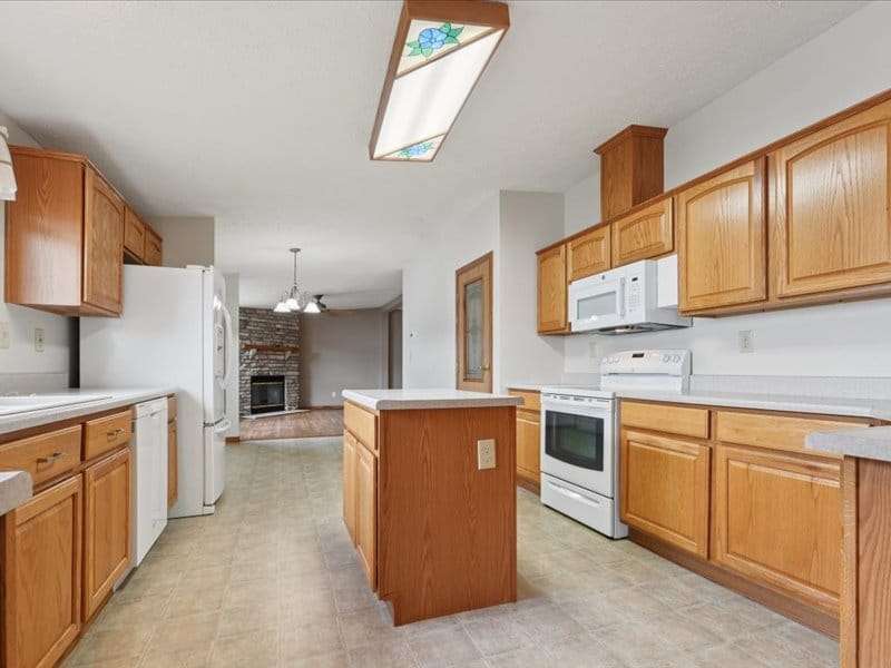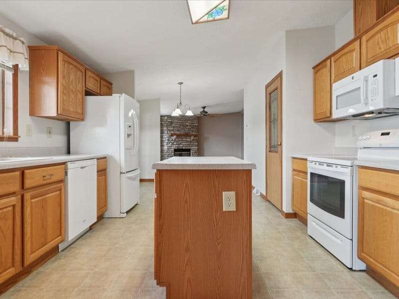 This spacious move-in ready double-wide home is in Country Club Crossing. Its been well-maintained & features an open layout with drywall (no paneling), a fireplace, kitchen island, pantry, 3-season porch, attached garage, & more! The home is on a corner lot with shade trees to cover while hanging out on the large front porch. The park has many amenities such as a club house, 2 playgrounds & a picnic area.