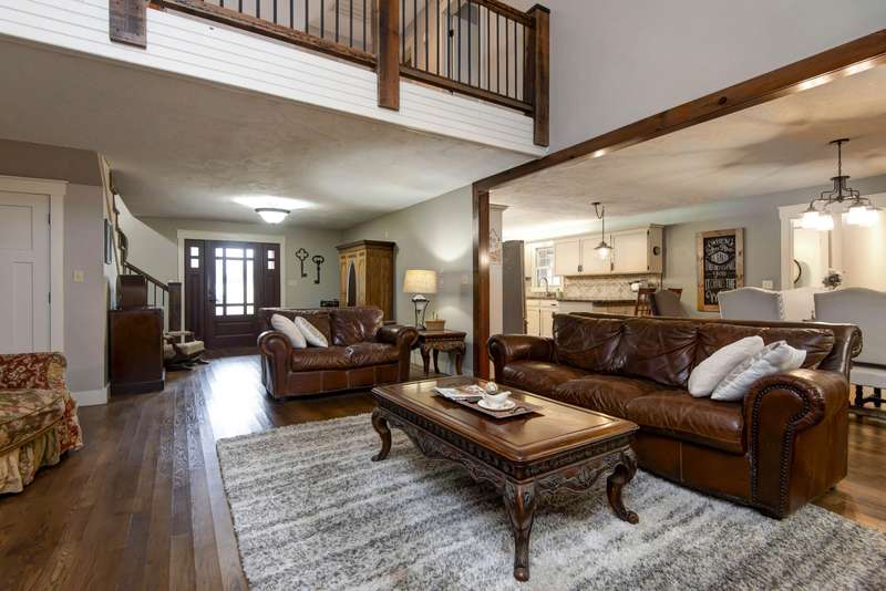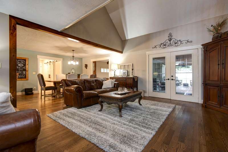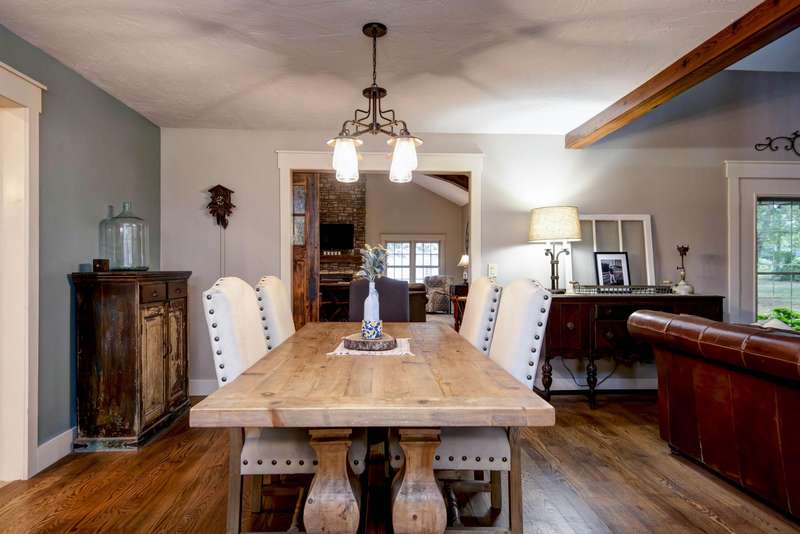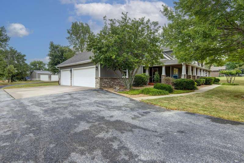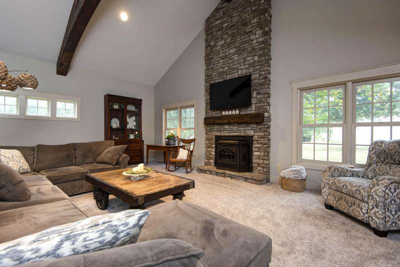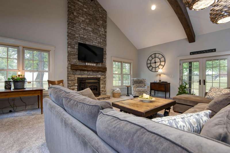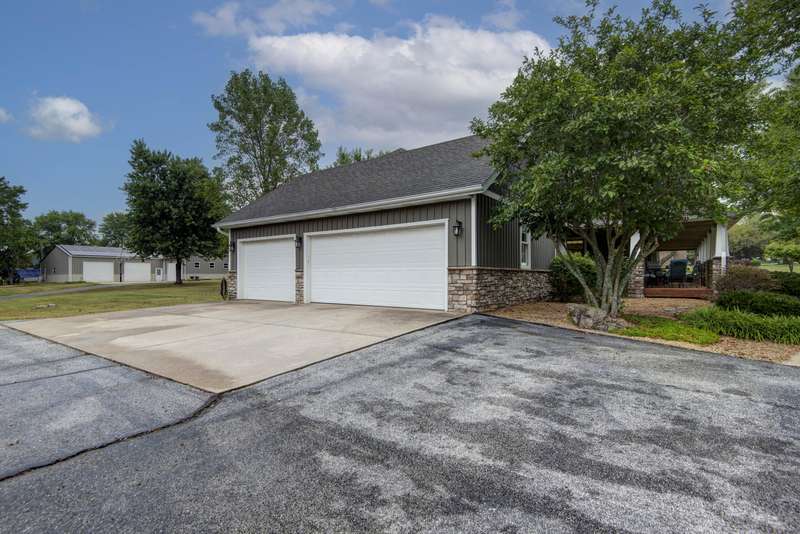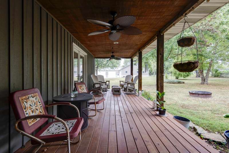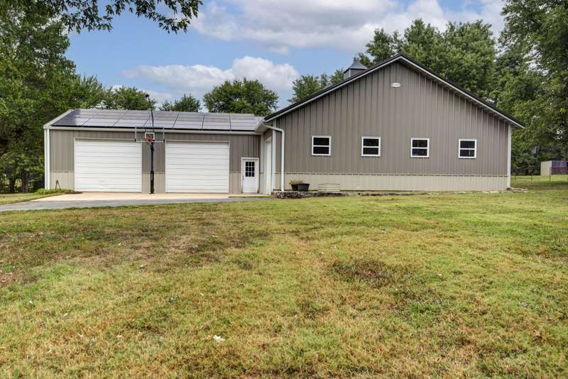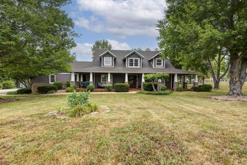 Completely Remodeled Countryside Retreat in Ozark Schools! This stunning Arts and Crafts home offers over 3,300 sq ft of beautifully reimagined living space, set on 2 acres surrounded by mature trees. Step inside to open living areas and vaulted ceilings with a dramatic floor to ceiling stone fireplace complimented by custom beamed ceilings and solid hardwood floors throughout. Featuring both pellet stove, and a wood burning fireplace on the main level. Upstairs loft area overlooks living area below, and boast 2 bedrooms, a bathroom and 3rd living area. The Chef's kitchen is designed for gathering featuring generous space for cooking , entertaining and daily living.Enjoy the outdoors from the expansive wraparound deck, perfect for quiet mornings or evenings with friends and family. Modern comfort meets efficiency with a high performance heat pump and solar system. providing outstanding utilities.A bonus 4,500 sq ft shop building offers endless opportunities, both insulated and heated-ideal for hobbies, storage, or business use. All this in the highly sought after Ozark School District, with a location that balances country living and convenience.This property is the perfect blend of character, comfort, and functionality-ready for its next owner to love and enjoy!