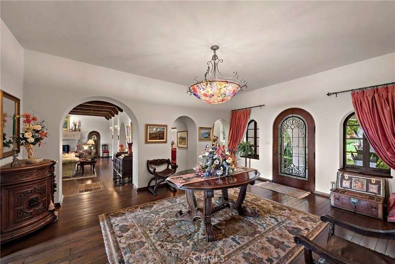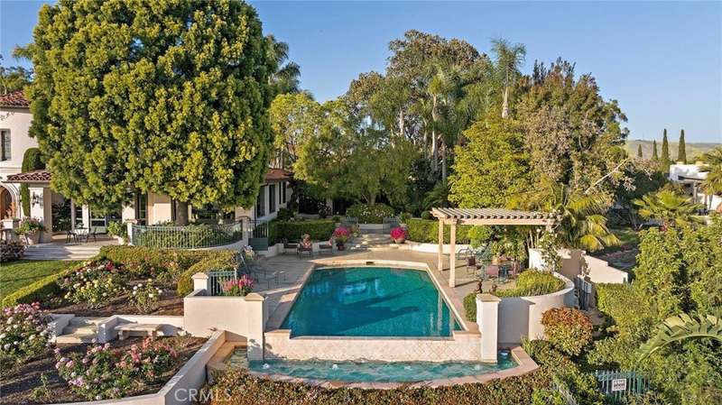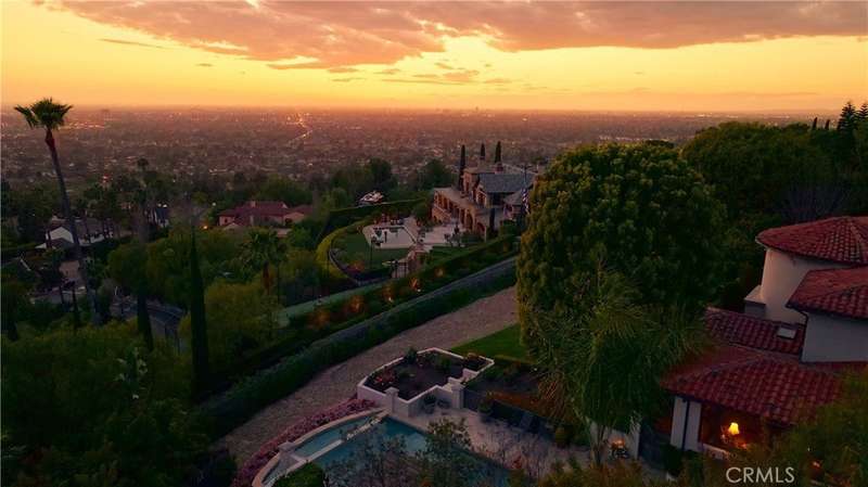 Welcome to the crown jewel of Lemon Heights, a gated Mediterranean Revival, multi generational compound perched above North Tustin’s most coveted ridge. Built in the 1930s, this residence is steeped in history yet utterly timeless. More than 90 majestic trees, many exceeding 50 feet in height, envelop the two landscaped parcels (totaling 2.4 acres), creating a tranquil, private oasis that stands apart from the world. The views are breathtaking and sweeping from Catalina to Palos Verdes, then turning to reveal rolling hills and snow-capped peaks. And unlike most ridgeline estates that trade flat land for elevation, this property defies convention, offering lush, expansive lawns paired with cinematic vistas. For nearly 30 years, a single family has stewarded this 6,500-square-foot residence, and that care shows in every detail. Soaring ceilings, hand-applied stucco walls, antique walnut woodwork, and carved stone mantels evoke old-world elegance with modern refinement. This estate is a compound unto itself, encompassing a guest house, carriage house, multiple garages, a recreation center, and an outdoor veranda exceeding 1,000 square feet, perfectly suited for grand entertaining or quiet sunsets. A circular motor court, central fountain, and garden pathways invite discovery. At the rear, an infinity-edge pool and spa command dramatic views by day and glittering city lights by night. Just when you think you’ve seen it all, a one-acre undeveloped parcel lies waiting—ideal for a vineyard, sculpture garden, or your boldest vision. This is more than real estate, it’s inheritance, legacy, and one-of-a-kind.
