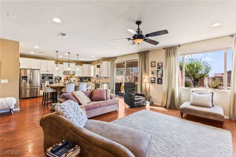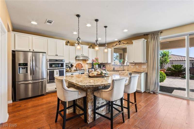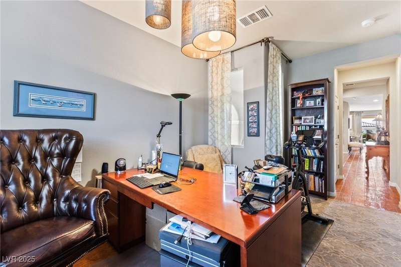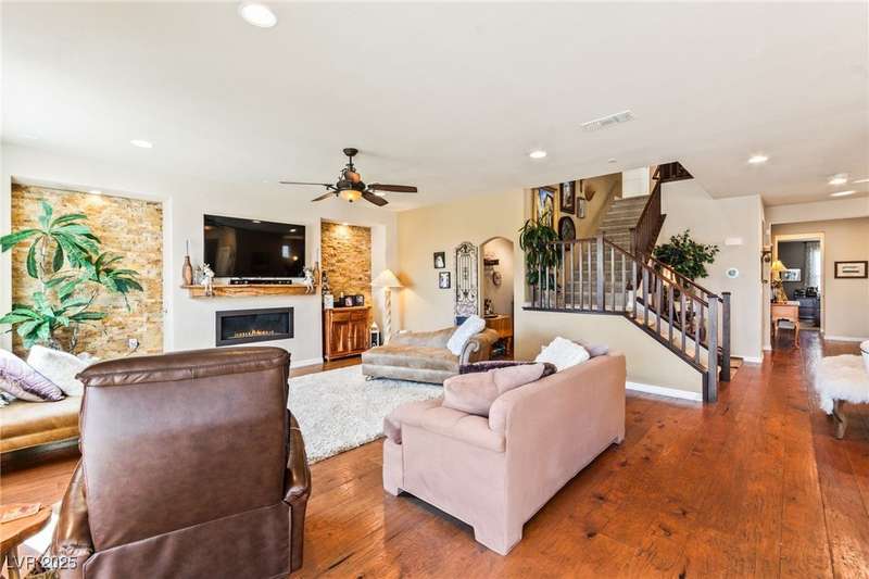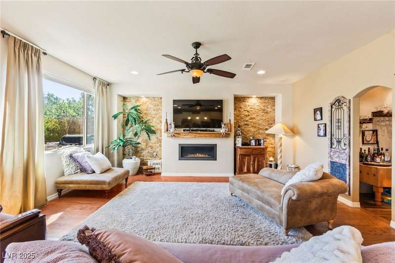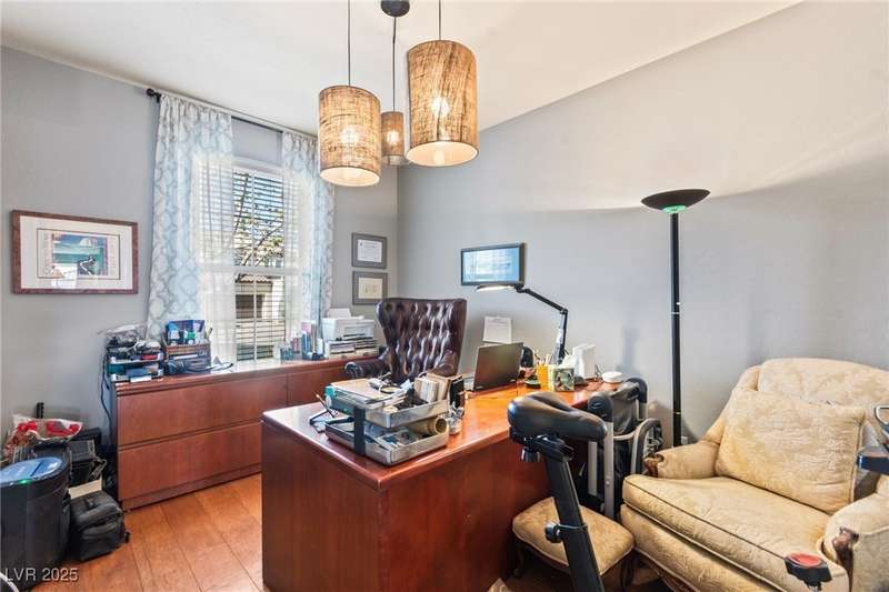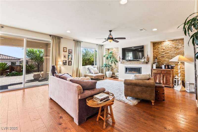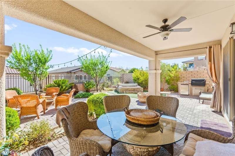 ***MOTIVATED SELLERS*** SELLER OFFERING 10K CONCESSION FOR COST/RATE BUY DOWN! In a gated Summerlin community, this stunning home welcomes you with a cobblestone courtyard. Downstairs features a formal living room, family room, dining room and a den/office and boasts rich, hardwood floors. The family room showcases stone accents and a sleek gas fireplace, while the chef’s kitchen boasts a large marble island, stainless appliances, custom cabinetry with pull-outs and a walk-in pantry. Upstairs offers all bedrooms plus a loft ideal for work or play. The primary suite includes dual walk-in closets and a spa-like bath with an oversized custom shower. Step out onto the large balcony to enjoy sweeping mountain and Strip views. The backyard is perfect for entertaining with a built-in BBQ, fire pit and relaxing in-ground spa. Just minutes from Downtown Summerlin, Las Vegas Ballpark, Red Rock Canyon, Costco and more, this home offers the perfect blend of luxury, comfort, and convenience.