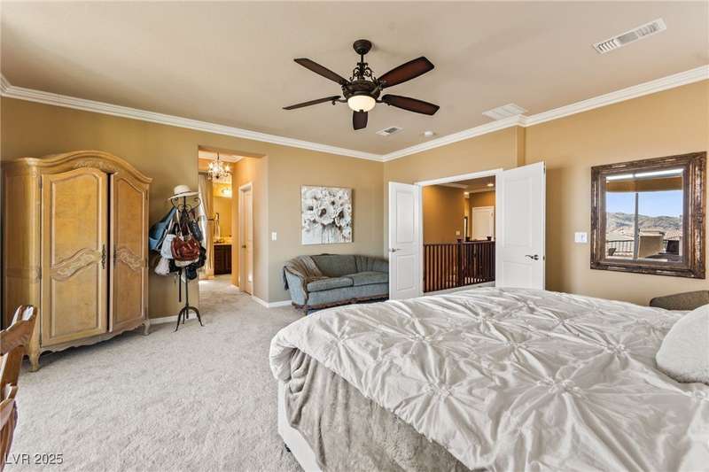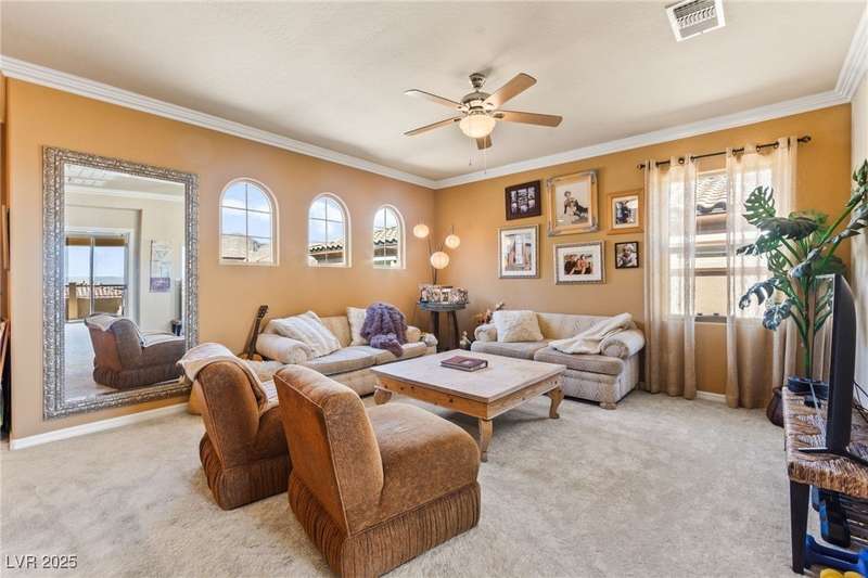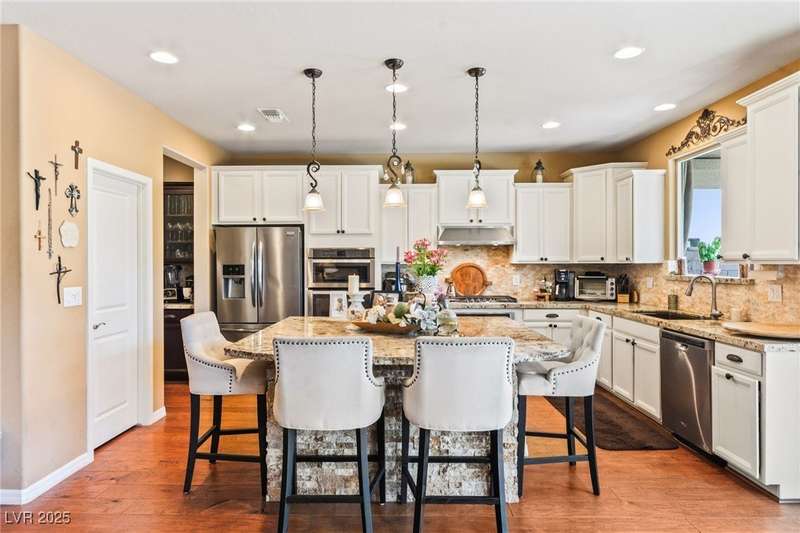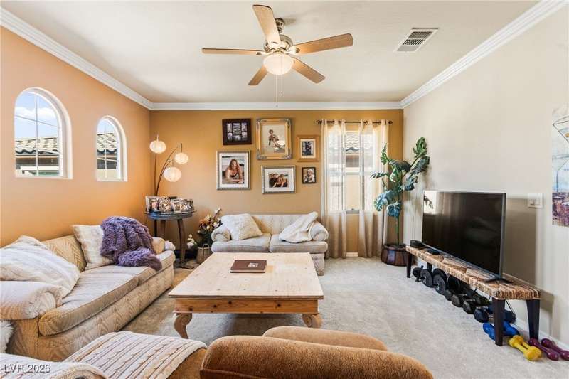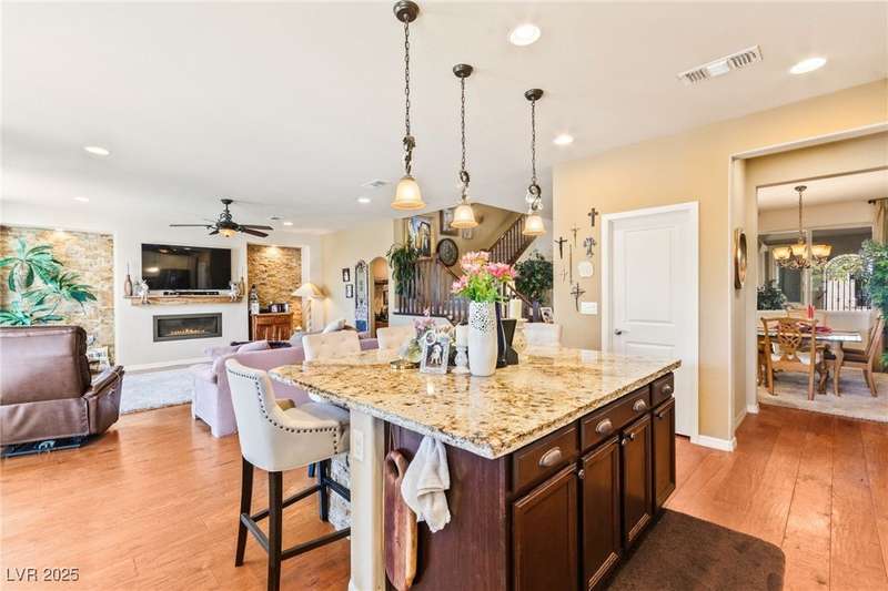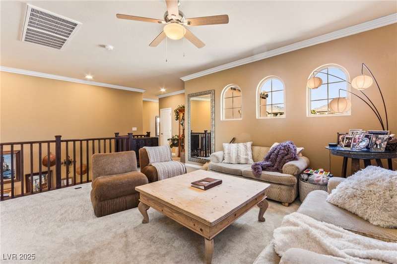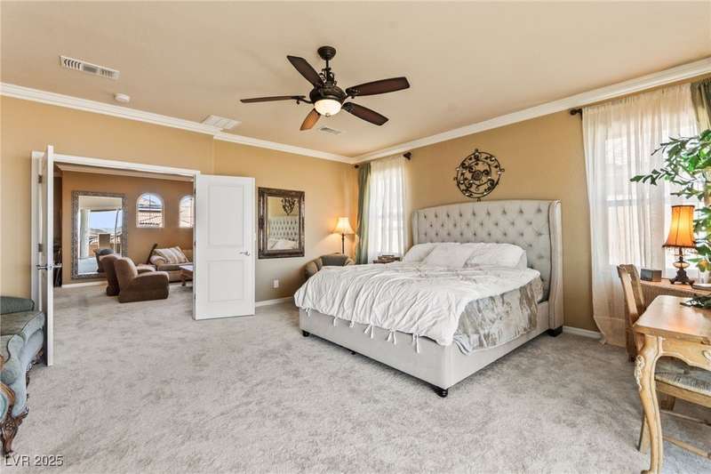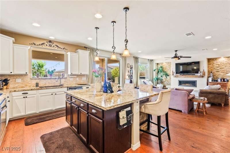 ***MOTIVATED SELLERS*** SELLER OFFERING 10K CONCESSION FOR COST/RATE BUY DOWN! In a gated Summerlin community, this stunning home welcomes you with a cobblestone courtyard. Downstairs features a formal living room, family room, dining room and a den/office and boasts rich, hardwood floors. The family room showcases stone accents and a sleek gas fireplace, while the chef’s kitchen boasts a large marble island, stainless appliances, custom cabinetry with pull-outs and a walk-in pantry. Upstairs offers all bedrooms plus a loft ideal for work or play. The primary suite includes dual walk-in closets and a spa-like bath with an oversized custom shower. Step out onto the large balcony to enjoy sweeping mountain and Strip views. The backyard is perfect for entertaining with a built-in BBQ, fire pit and relaxing in-ground spa. Just minutes from Downtown Summerlin, Las Vegas Ballpark, Red Rock Canyon, Costco and more, this home offers the perfect blend of luxury, comfort, and convenience.