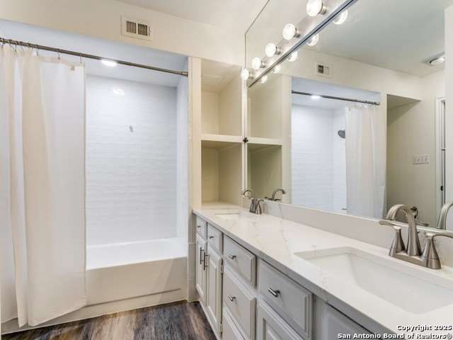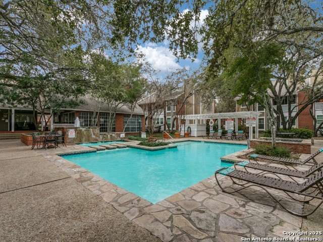 A one-bedroom, second-floor condominium overlooking the Salado Creek Greenway offers a serene living environment with natural light and scenic views. Located across from Phil Hardberger Park, this unit provides easy access to green spaces and recreational activities. A spacious and inviting living area features a fireplace, dining room and access to screened in porch. Neutral color palette throughout, solid surface countertops in kitchen and bathroom. Primary suite with bathroom access and walk-in closet. Laundry closet inside. Screened in patio offers scenic view and a storage closet. Community pool, clubhouse and tennis courts. Central location with easy access to freeways.