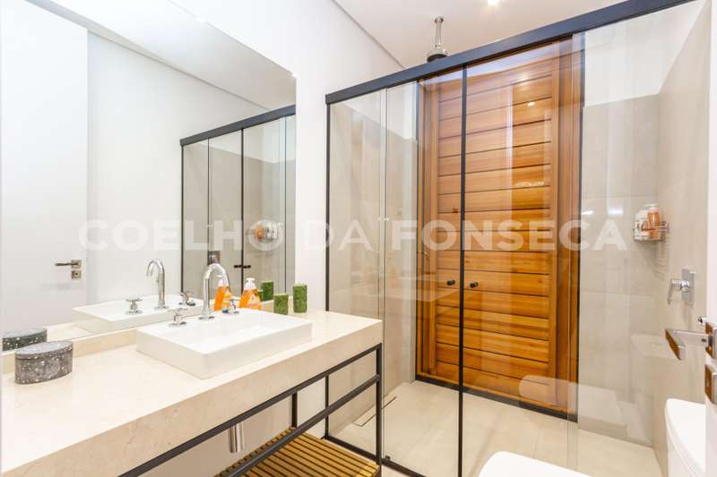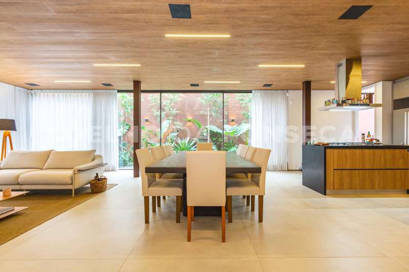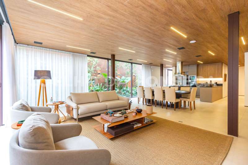 Características destacadas incluem um living espaçoso e iluminado, conectado harmoniosamente à área externa por portas de vidro, ideal para quem aprecia um ambiente integrado com belo paisagismo. A cozinha americana, equipada com os melhores eletrodomésticos, é um convite à gastronomia refinada.A adega climatizada para 340 garrafas complementa o espaço, garantindo um toque de sofisticação aos momentos de descontração.