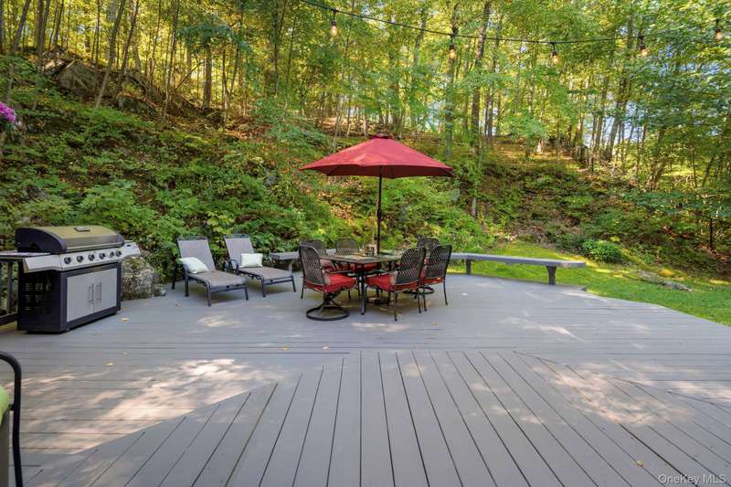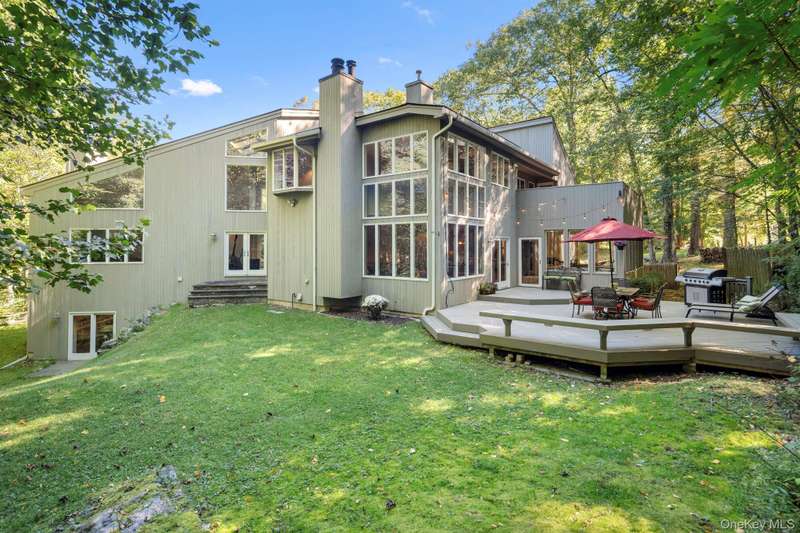 Move right into this bright and spacious 4 bedroom/5.1 bath contemporary home with Byram Hills schools, privately set on 3.41 acres in a quiet cul-de-sac. Dramatic foyer with 20'+ ceiling height and very generously sized rooms throughout. Flexible layout lives like a five bedroom including a main-level guest suite, ideal for a home office or au pair, along with an eat-in kitchen and pantry, dining room, family room and living room both with fireplaces, and a fabulous three season sunroom with deck access. Upstairs features an oversized primary suite with deck, very large walk-in closet, and spa bath, plus one en-suite bedroom with bath and two additional bedrooms share a hall bath. The finished lower level offers an expansive recreation room with movie screen and projector, sliding glass doors to yard, separate gym, full bathroom, office, and garage access. Special features include two decks, cathedral ceilings, full house generator, many built-ins, skylights, 3-car garage, fenc